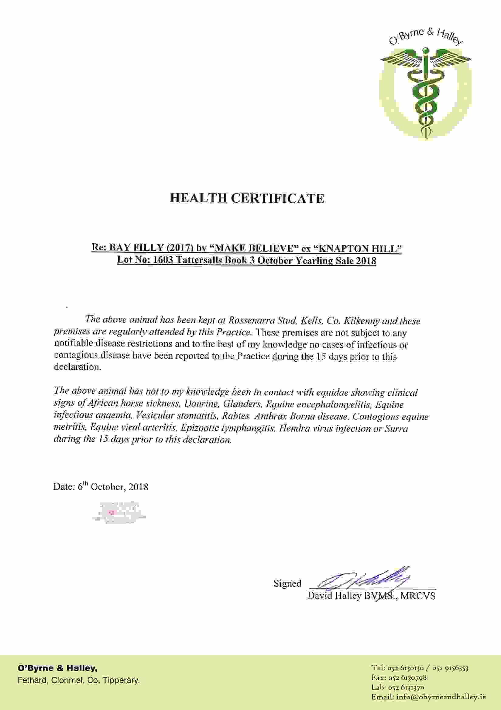 September Yearling Sale 2016 lot 130 F. by Excelebration (IRE) 2015, Rossenarra Stud=>Amanda Skiffington €20,000