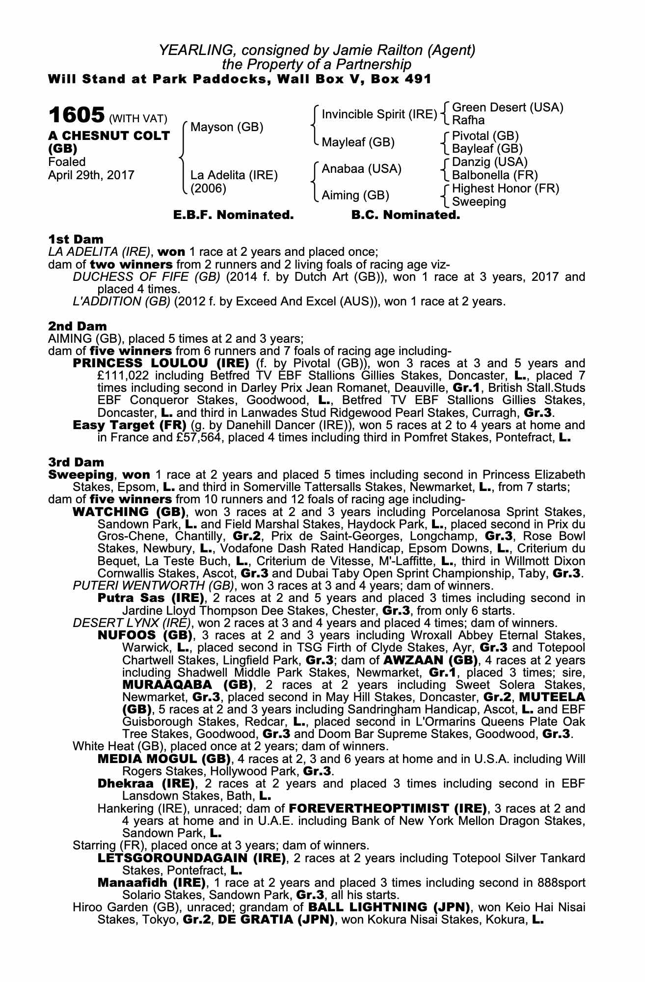Consignor: Jamie Railton (Agent)