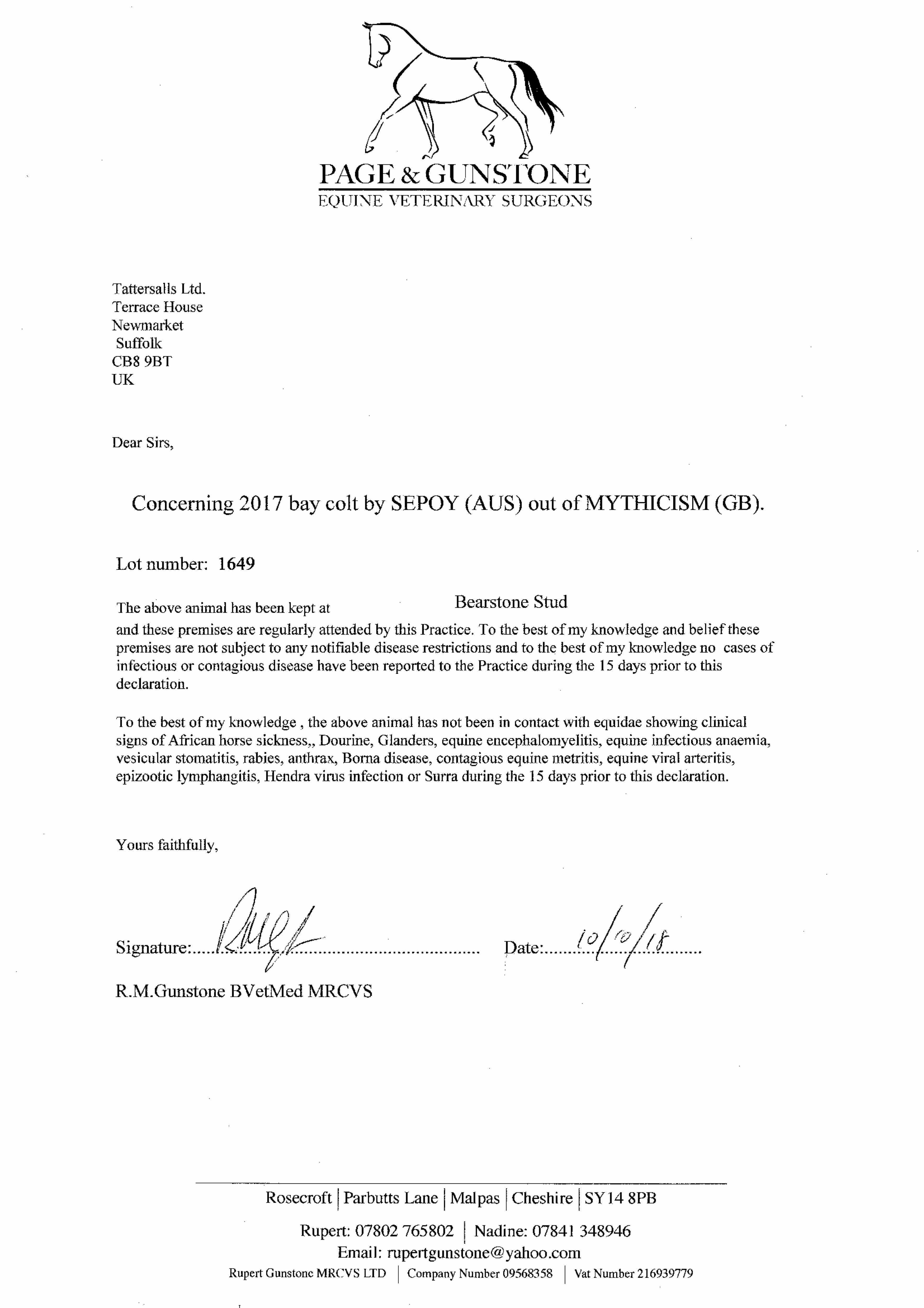 Consignor: Bearstone Stud