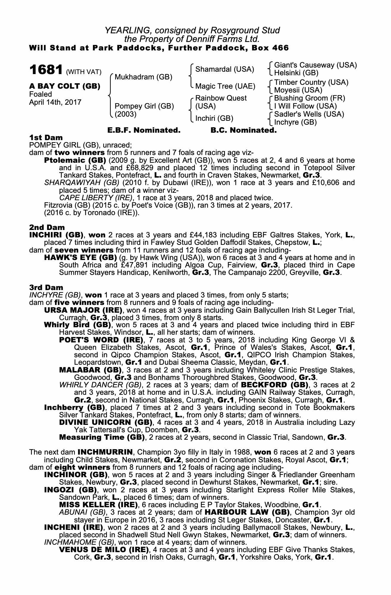 Consignor: Rosyground Stud