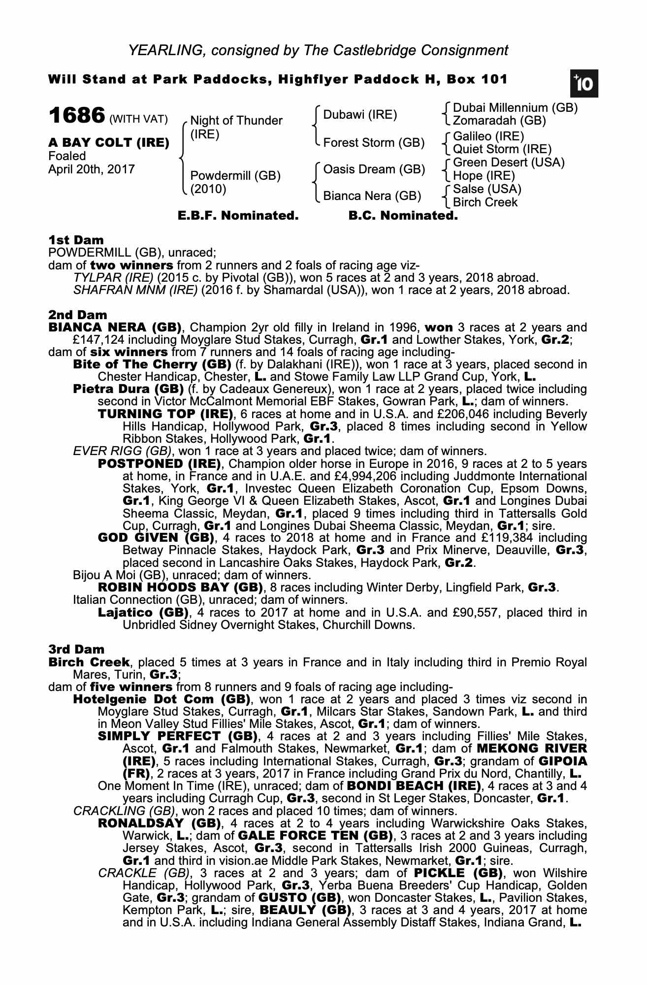 October Yearling Sale Book 1, 2016 lot 259 C. by Pivotal (GB) 2015, Houghton Bloodstock=>Imperial Bloodstock 30,000 gns
