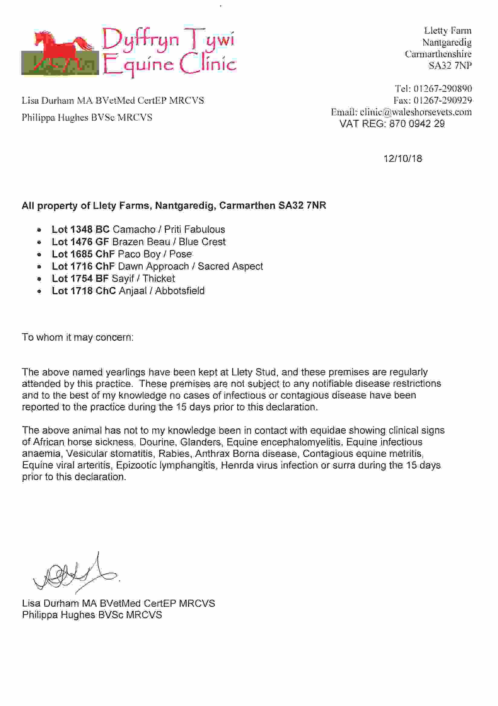 Consignor: Llety Farms