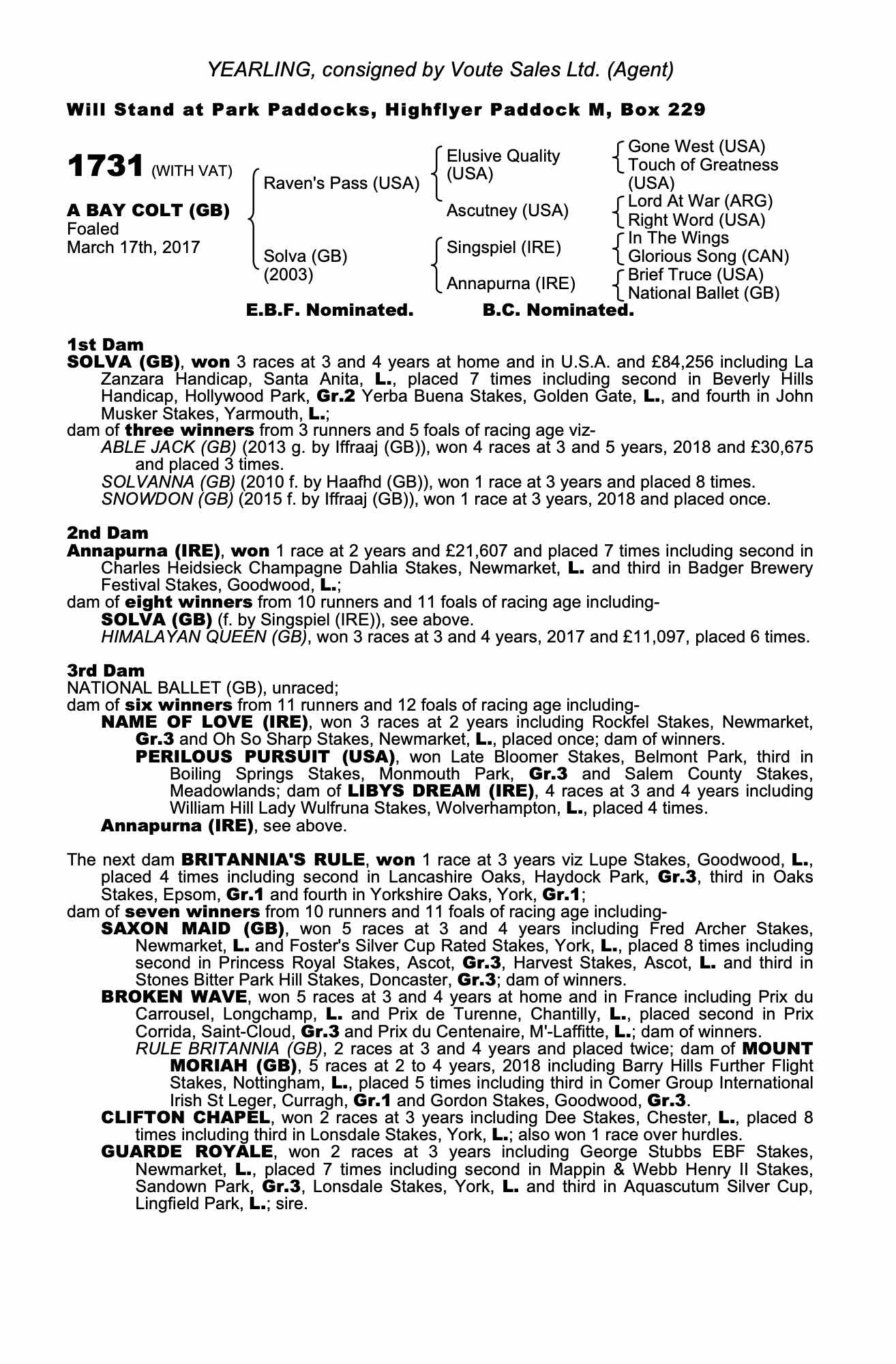 December Foal Sale 2017 lot 1106, Usk Valley Stud=>J Walsh Bloodstock 18,000 gns