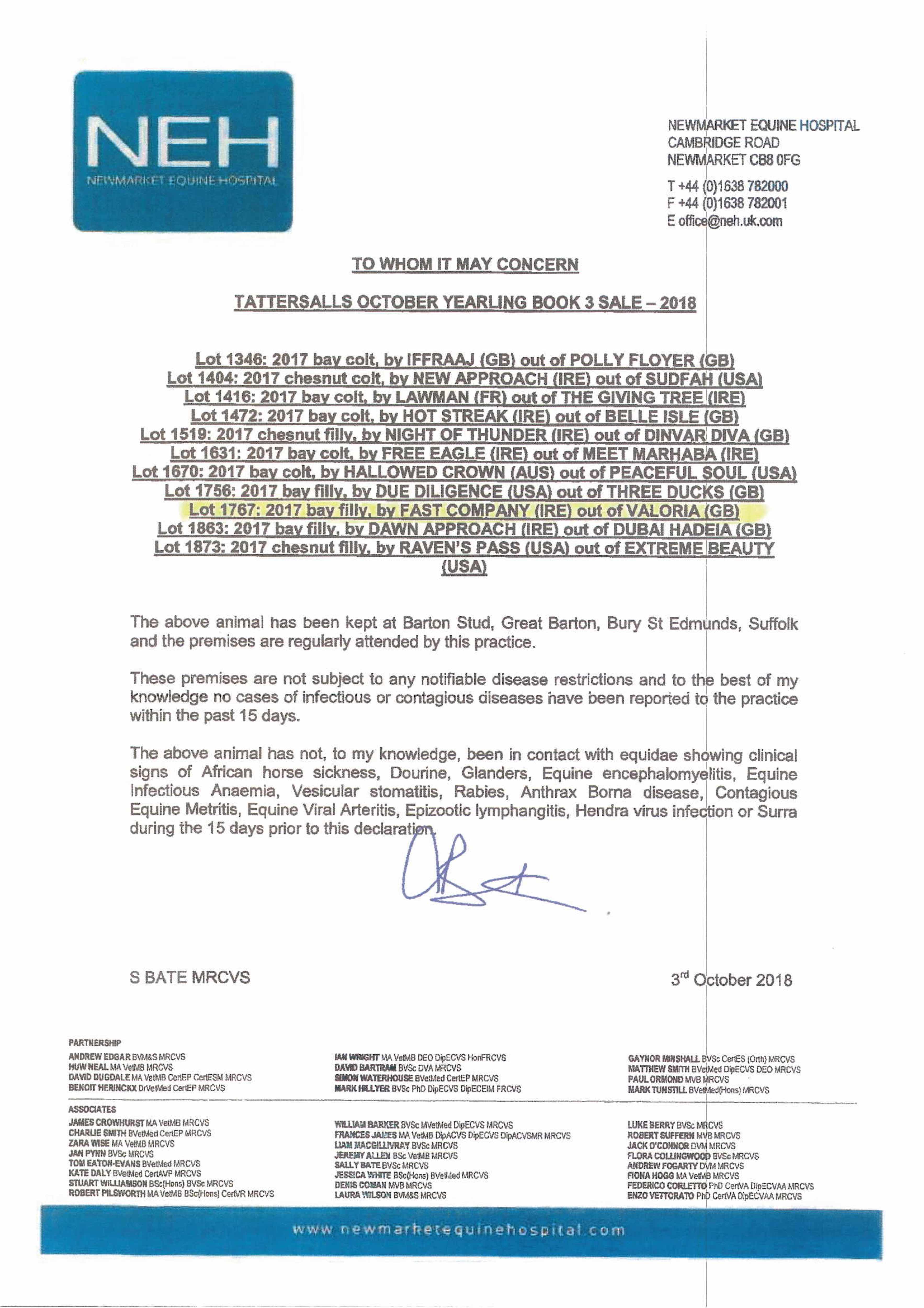 October Yearling Sale, Book 3 2019 lot 1701 F. by Nathaniel (IRE) 2018, Barton Stud=>Janda Bloodstock 5,000 gns