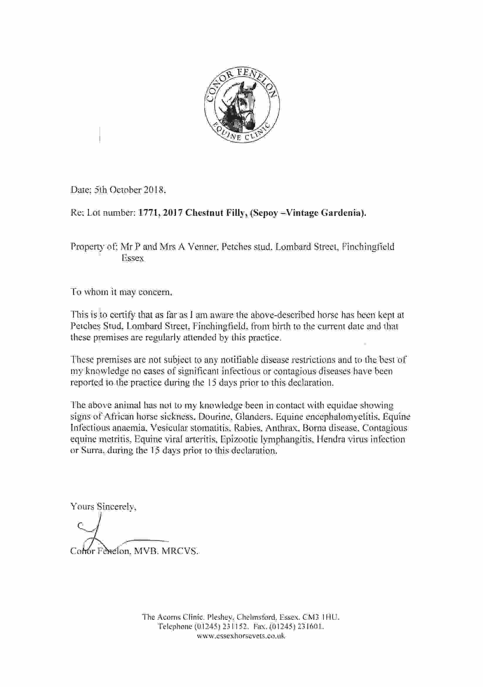 December Foal Sale 2018 lot 762 F. by Territories (IRE) 2018, Petches Farm=>Vendor 5,000 gns