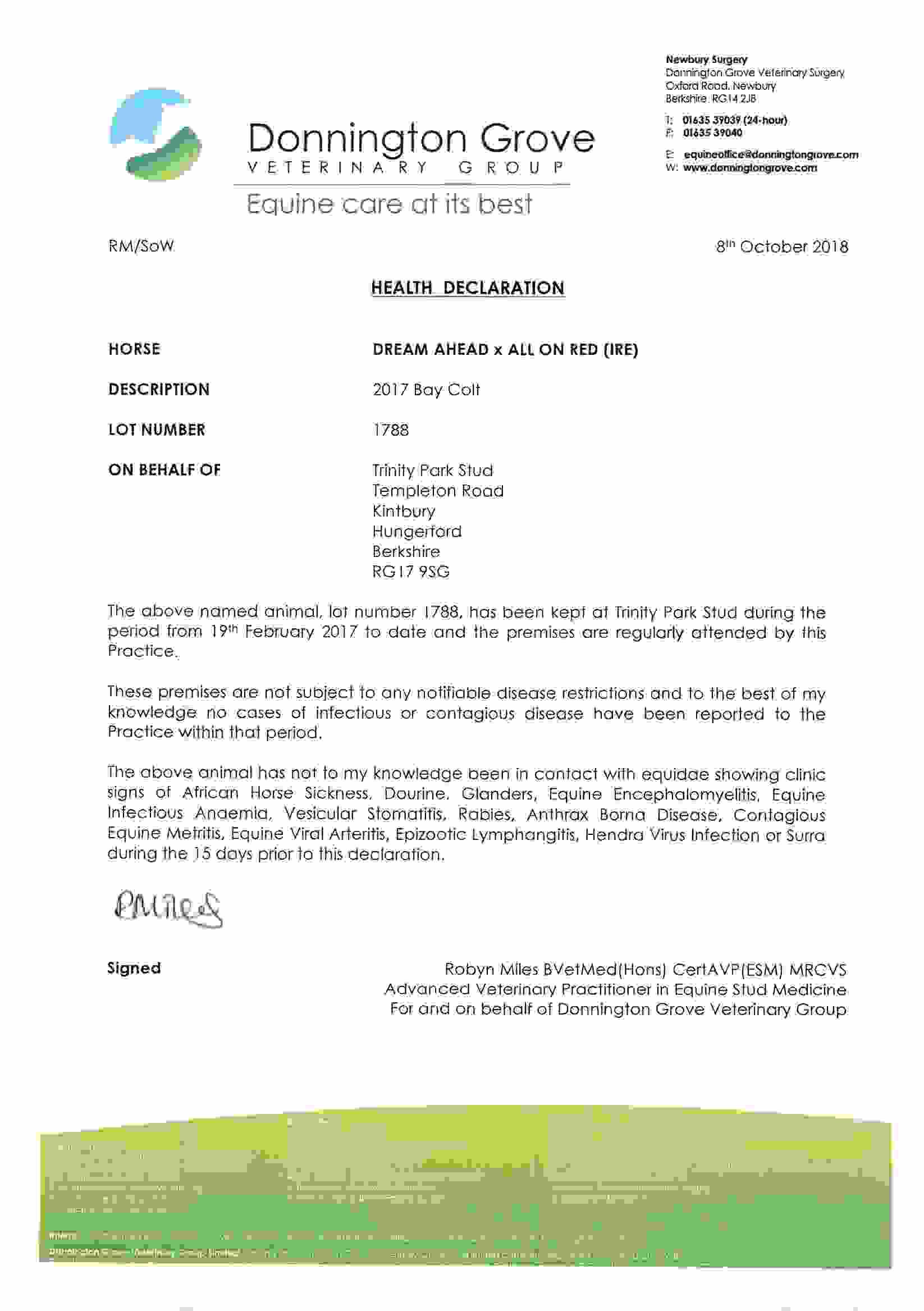 Consignor: Trinity Park Stud