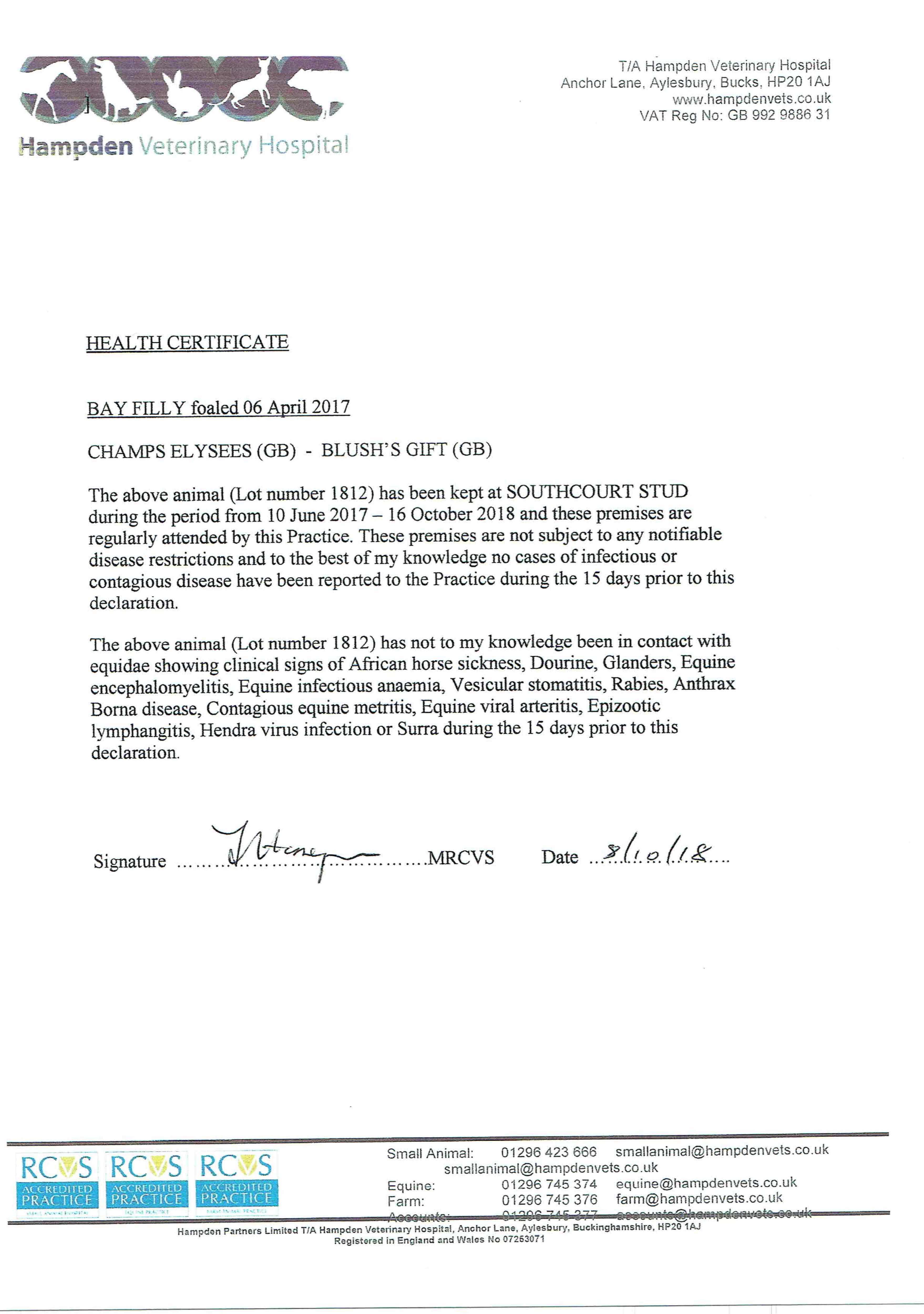 October Yearling Sale, Book 3 2016 lot 1782 F. 2015, The Southcourt Stud=>Argamia Bloodstock 800 gns