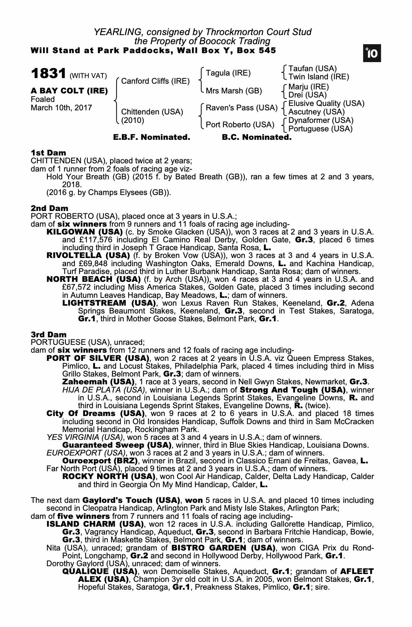 October Yearling Sale, Book 3 2017 lot 1902 C. by Champs Elysees (GB) 2016, Overbury Stud=>Trickledown Stud 20,000 gns