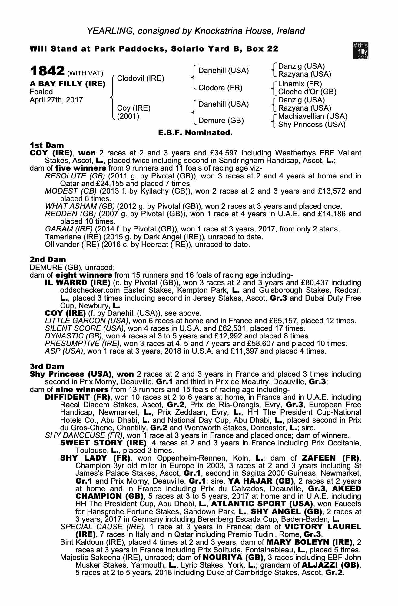 December Foal Sale 2014 lot 1234 F. by Pivotal (GB) 2014, Solo Bloodstock=>Joanna Morgan 23,000 gns