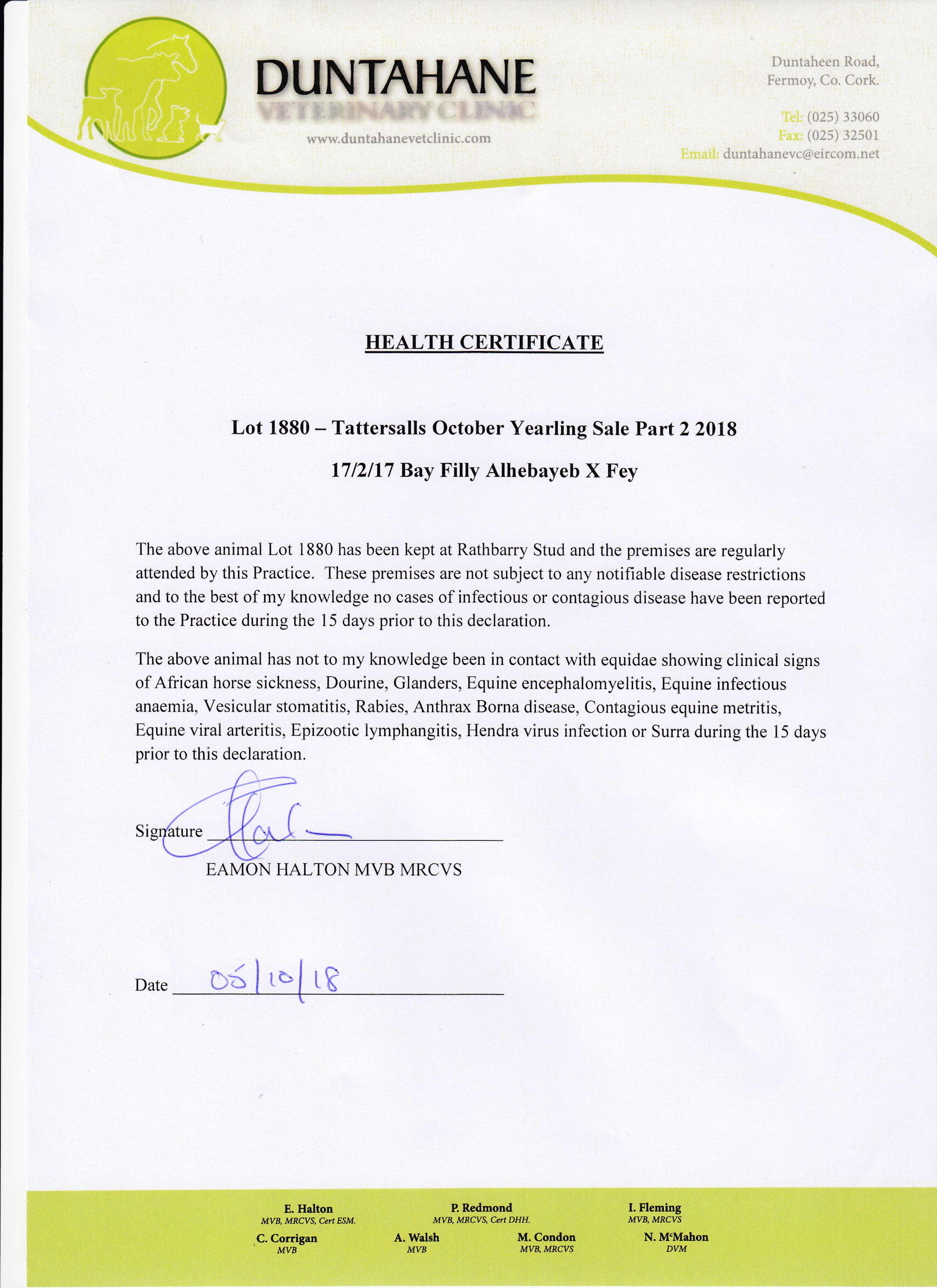Consignor: Rathbarry Stud, Ireland