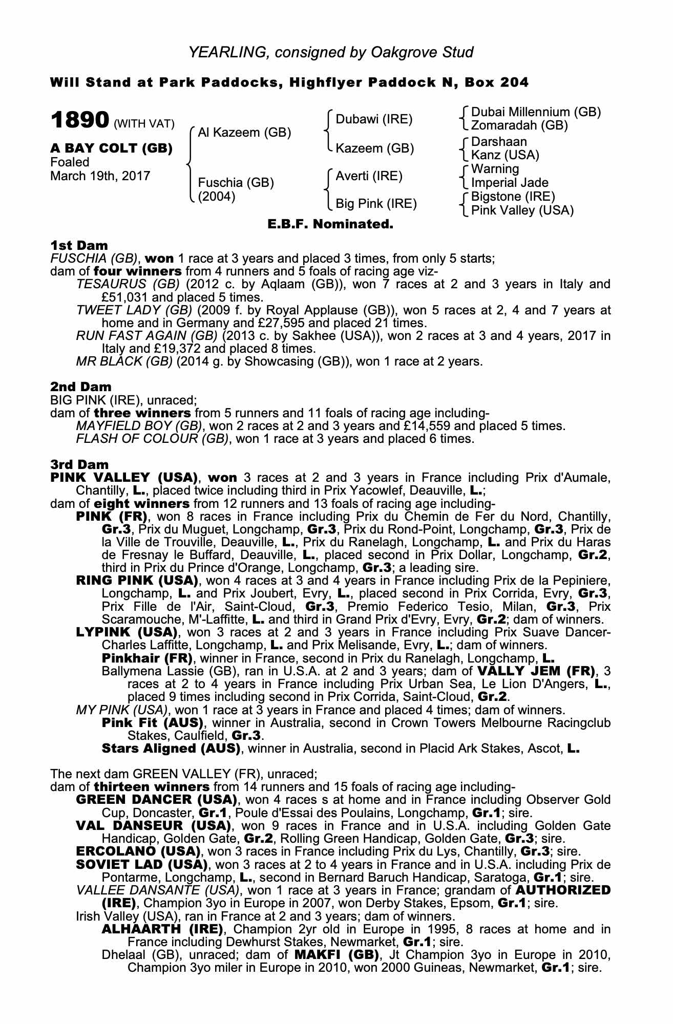Consignor: Oakgrove Stud