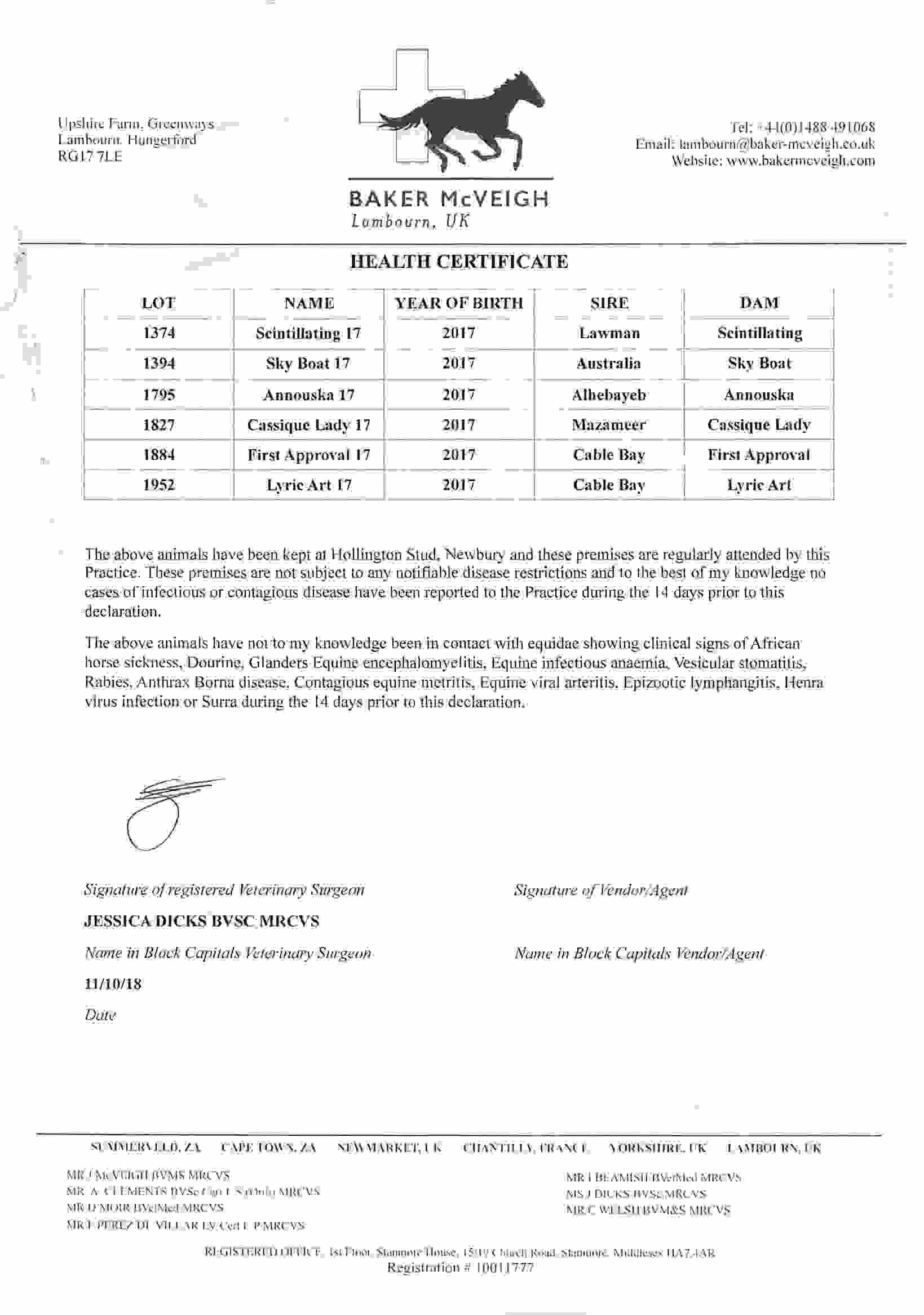July Sale 2018 lot 328 Billie Flynn (GB) (F. by Lawman (FR)), G. L. Moore Racing LLP=>Lot Not Sold