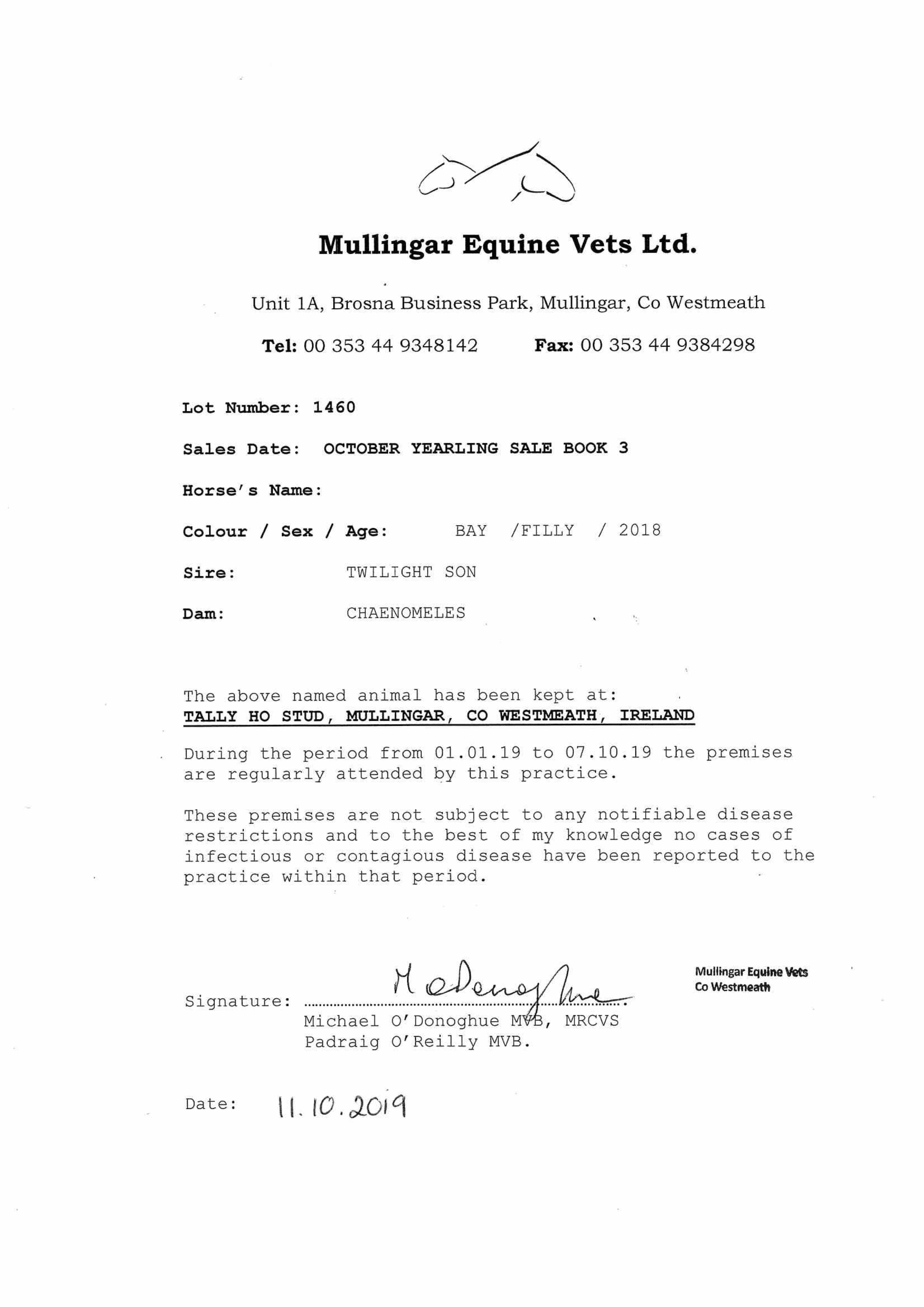 Somerville Yearling Sale 2021 lot 224 C. by Mehmas (IRE) 2020, Tally-Ho Stud, Ireland=>BBA Ireland 33,000 gns