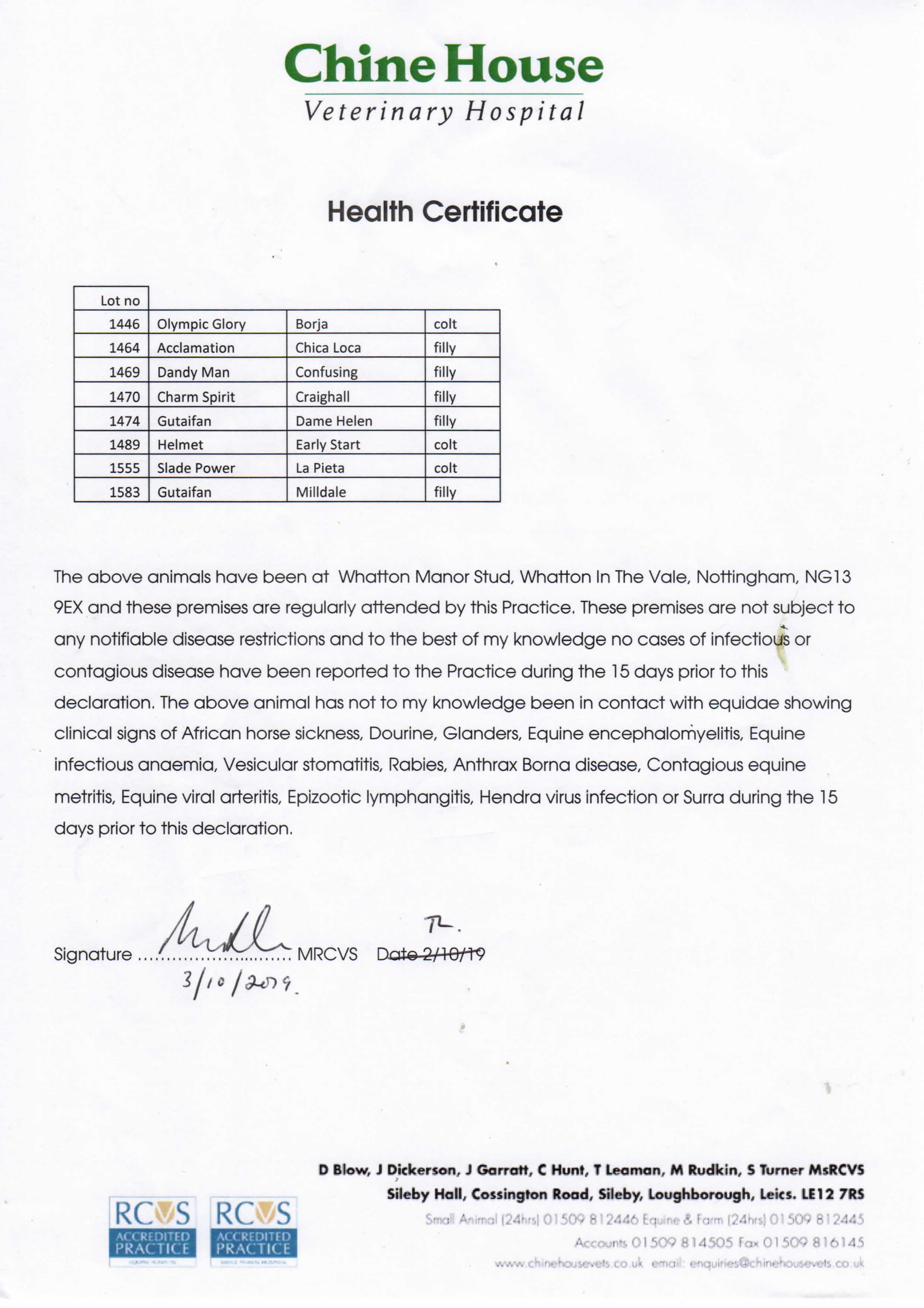 Consignor: Whatton Manor Stud