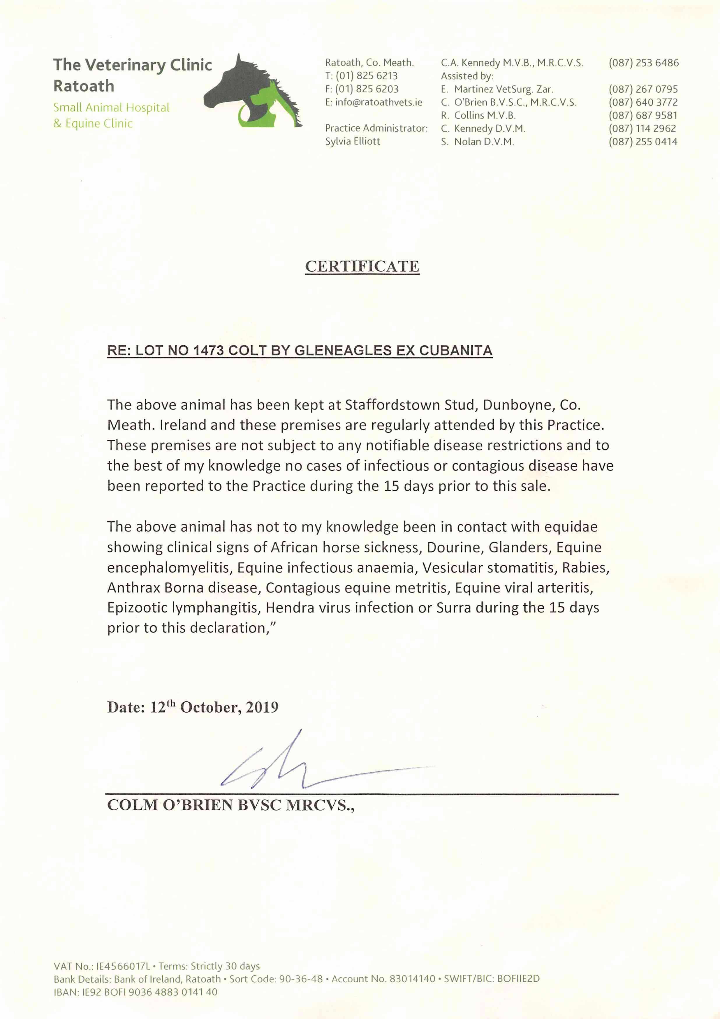 Consignor: Staffordstown, Ireland