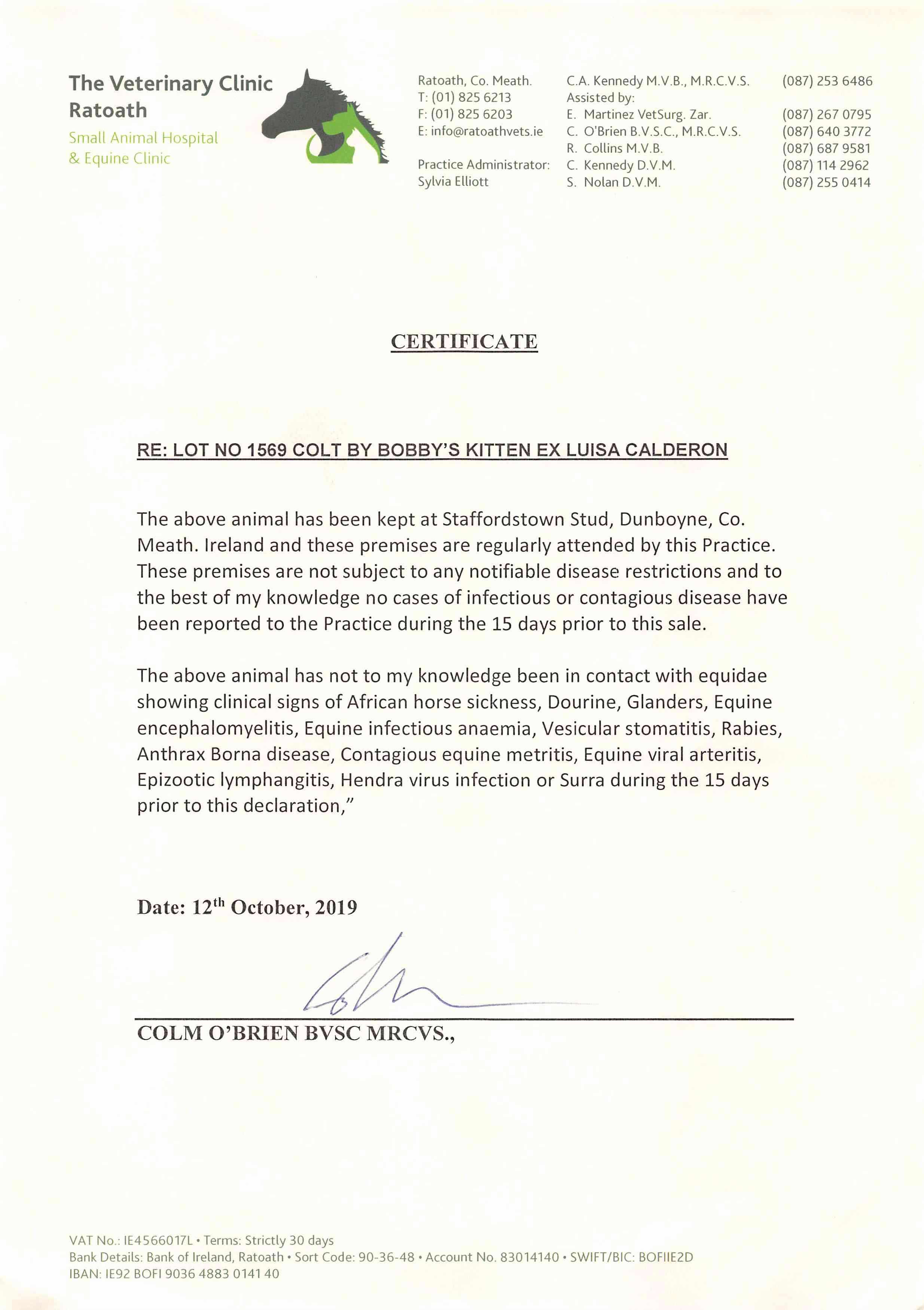 October Yearling Sale, Book 3 2020 lot 1491 C. by Sir Percy (GB) 2019, Staffordstown, Ireland=>Howson & Houldsworth Bloodstock / H Morrison / Group 1 Bloodstock 26,000 gns