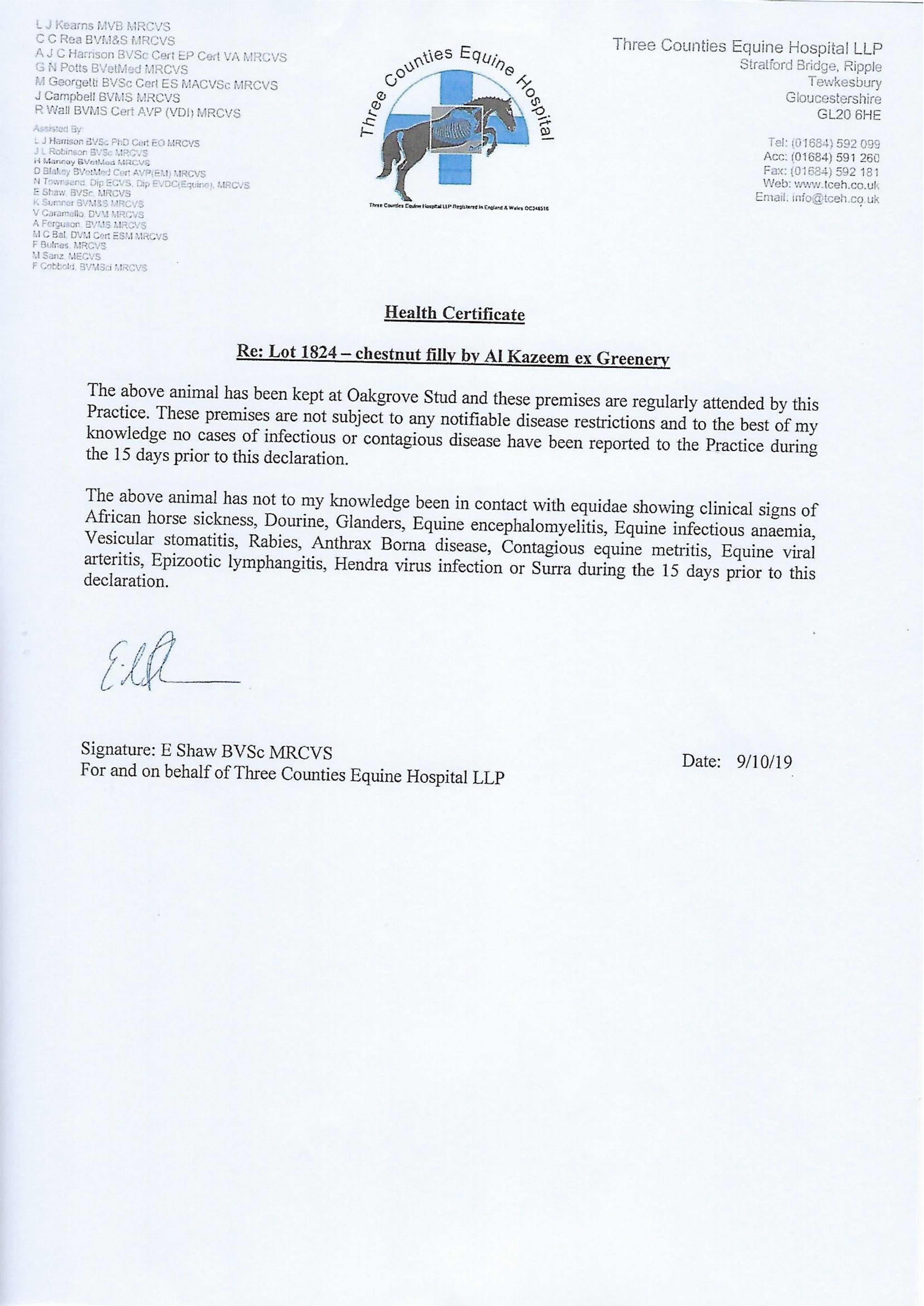 Ascot March Sale 2022 lot 1 F. by Gregorian (IRE) 2020, Castle Piece Stables (Mrs A. Stronge)=>Vendor £1,000