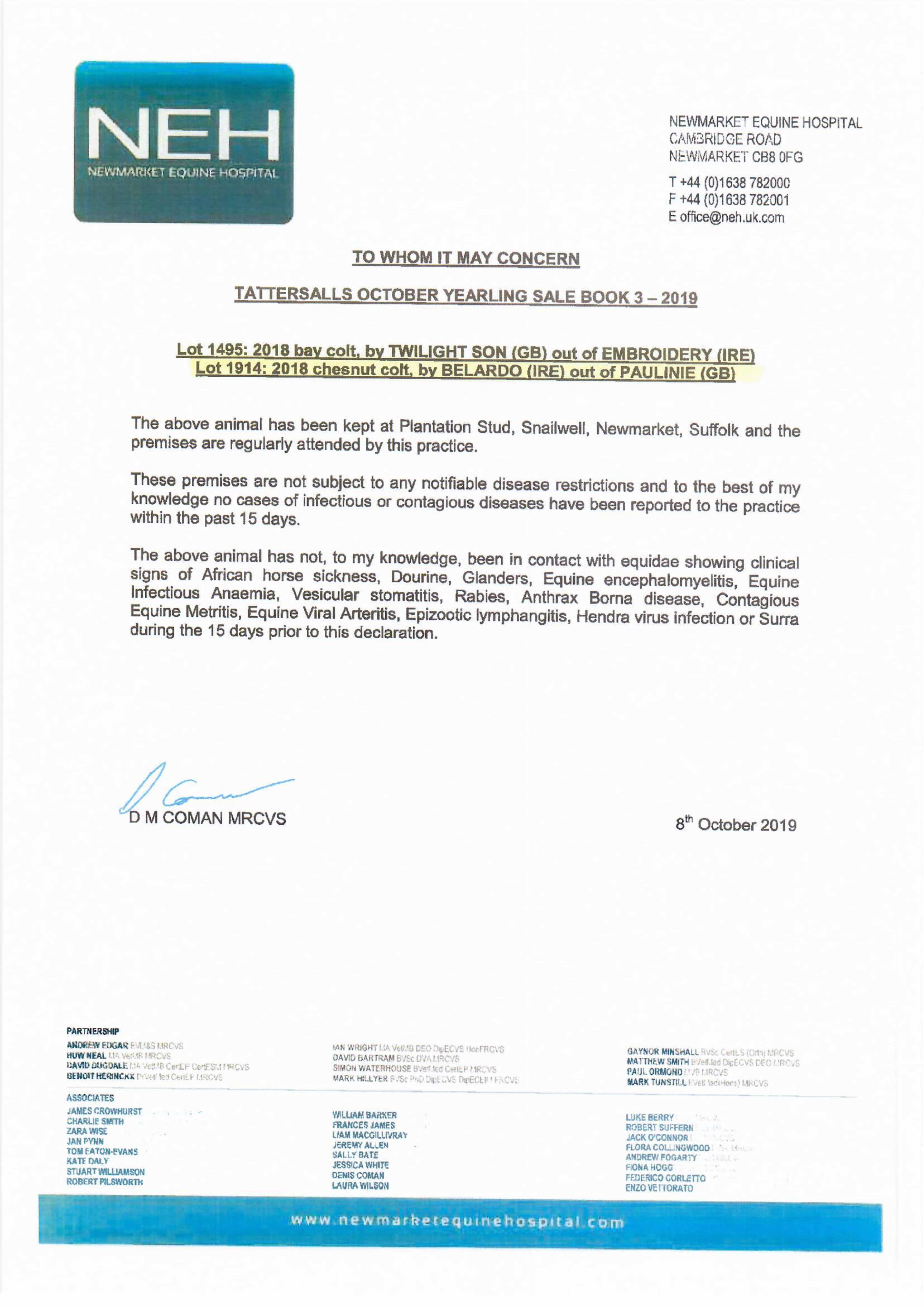 October Yearling Sale, Book 1 2020 lot 349 C. by Ribchester (IRE) 2019, John Troy (Agent)=>Vendor 50,000 gns