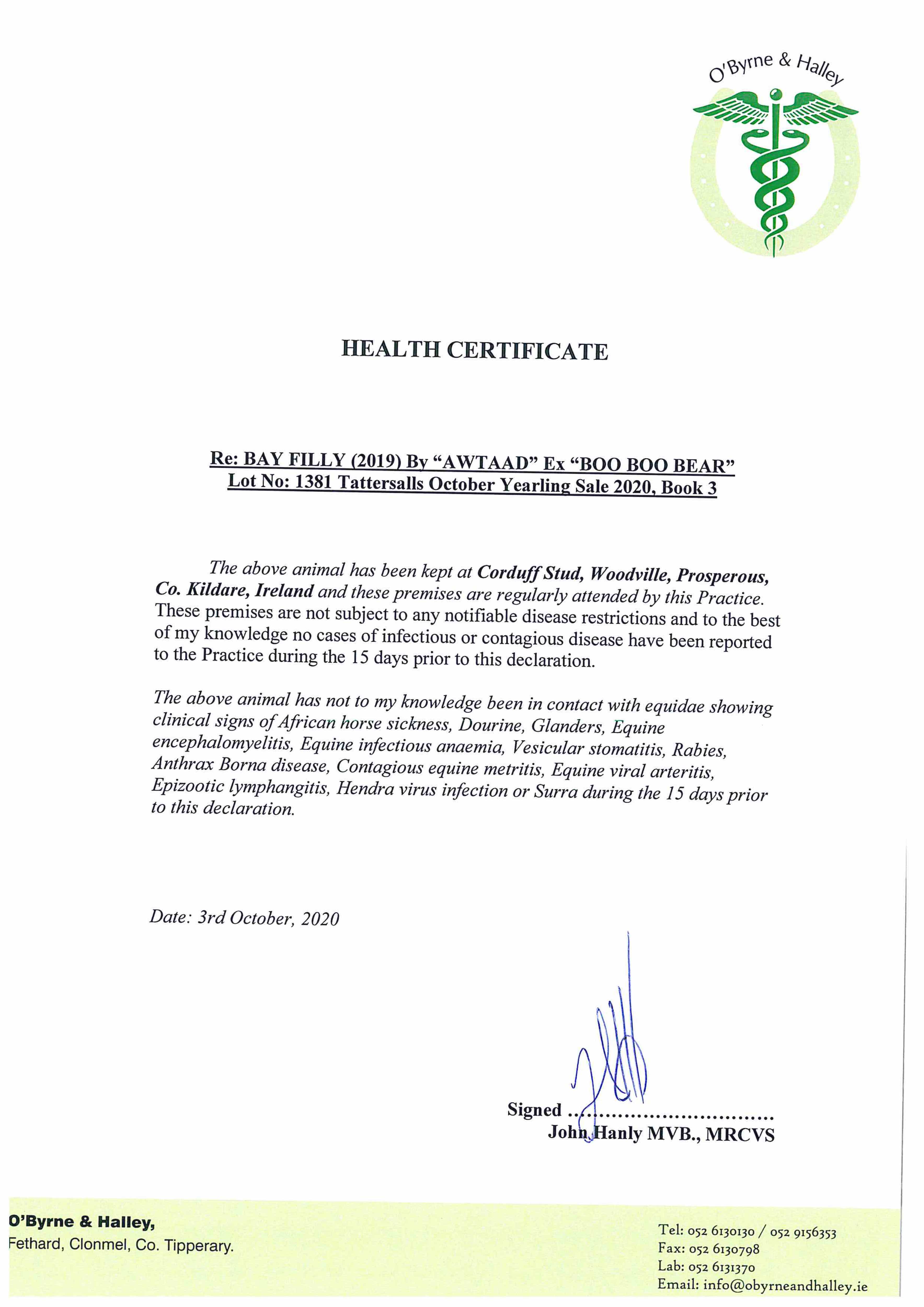 December Yearling Sale 2019 lot 62 F. by Showcasing (GB) 2018, Corduff Stud, Ireland=>BBA Ireland 47,000 gns