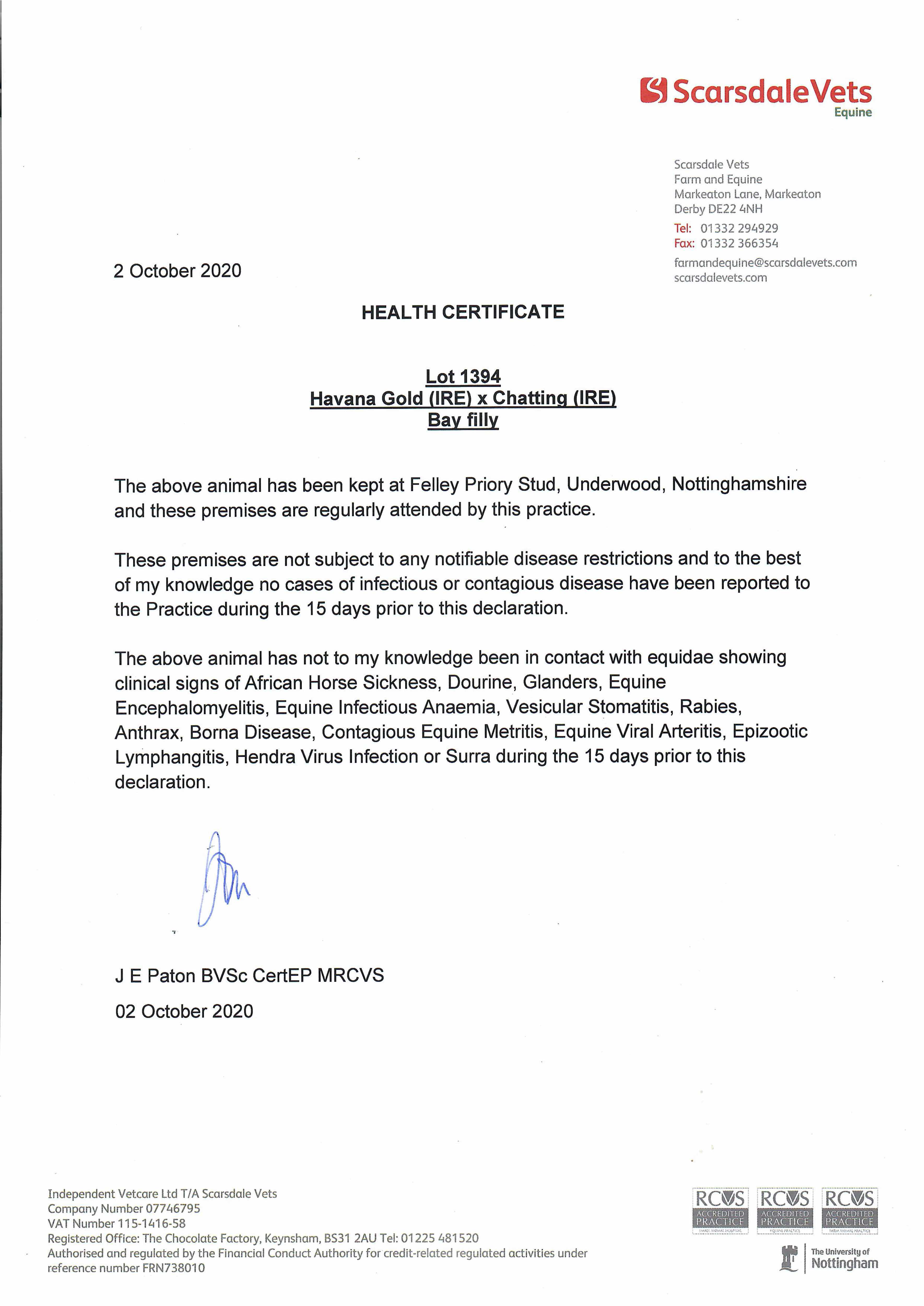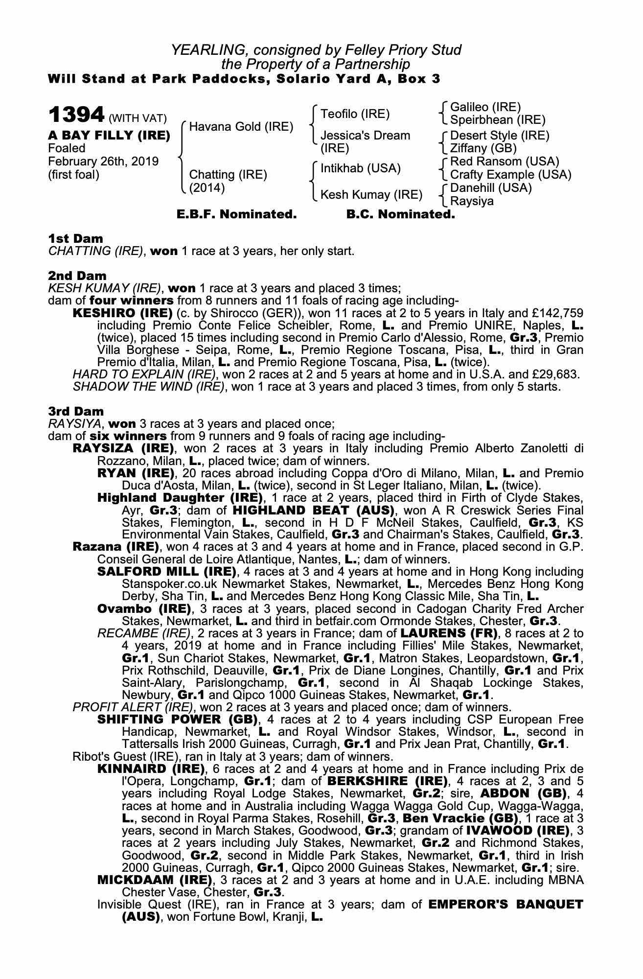 Consignor: Felley Priory Stud