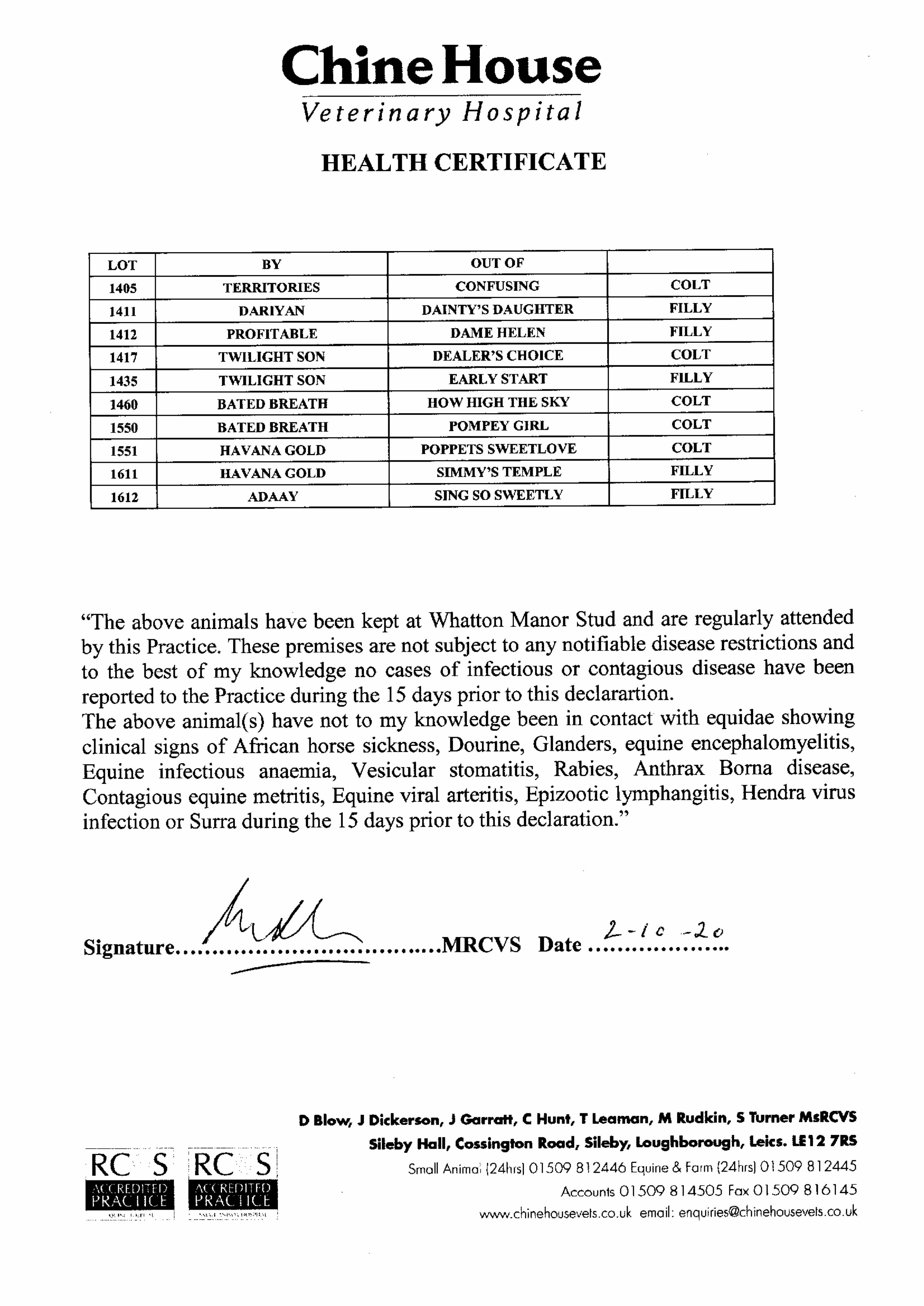 Consignor: Whatton Manor Stud