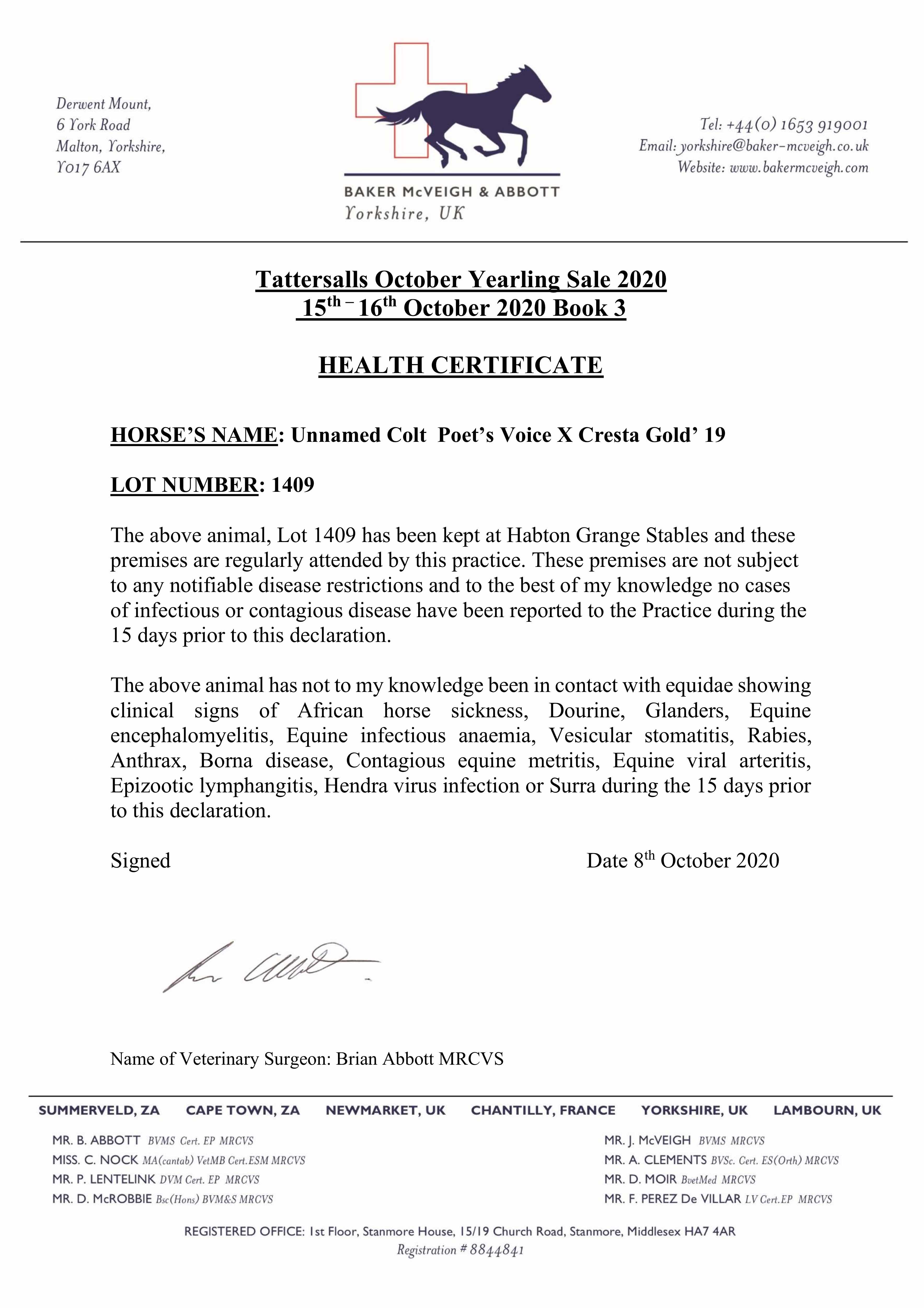 October Yearling Sale, Book 2 2014 lot 872 C. by Makfi (GB) 2013, Furnace Mill Stud=>Rabbit Trhovy Stepanov AS 7,000 gns