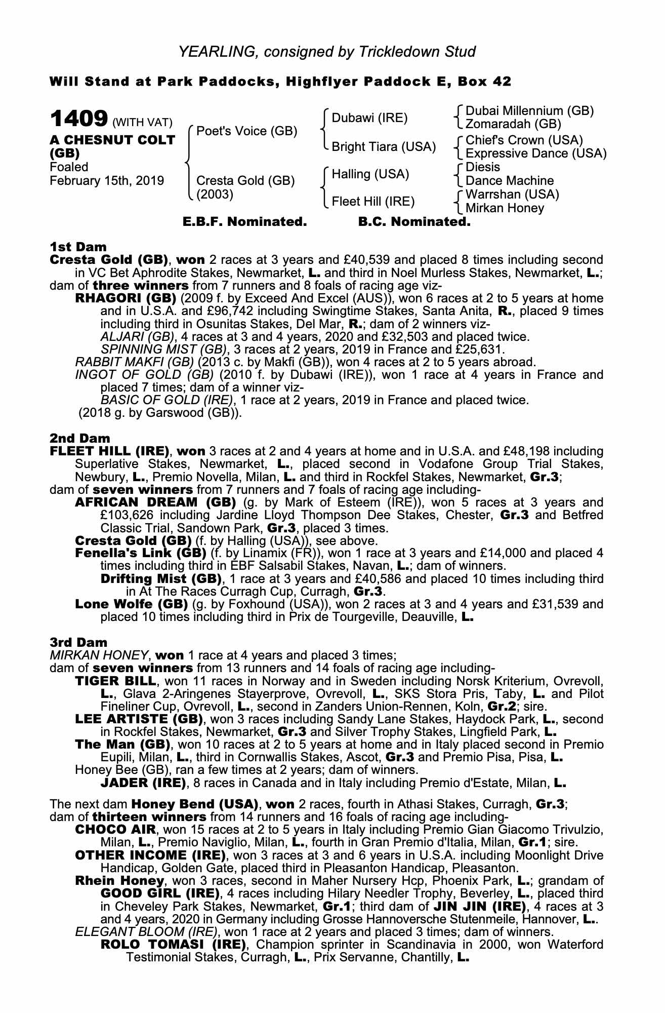 Consignor: Trickledown Stud