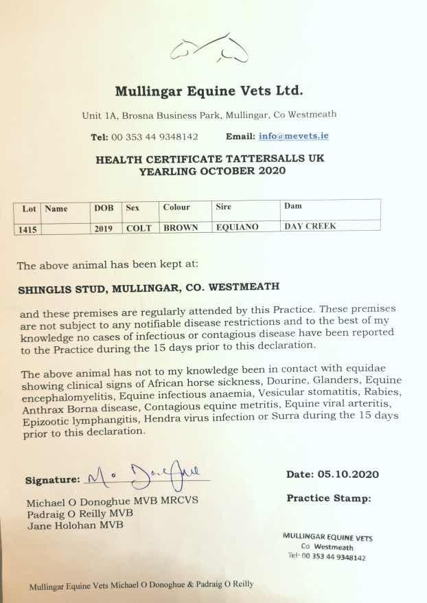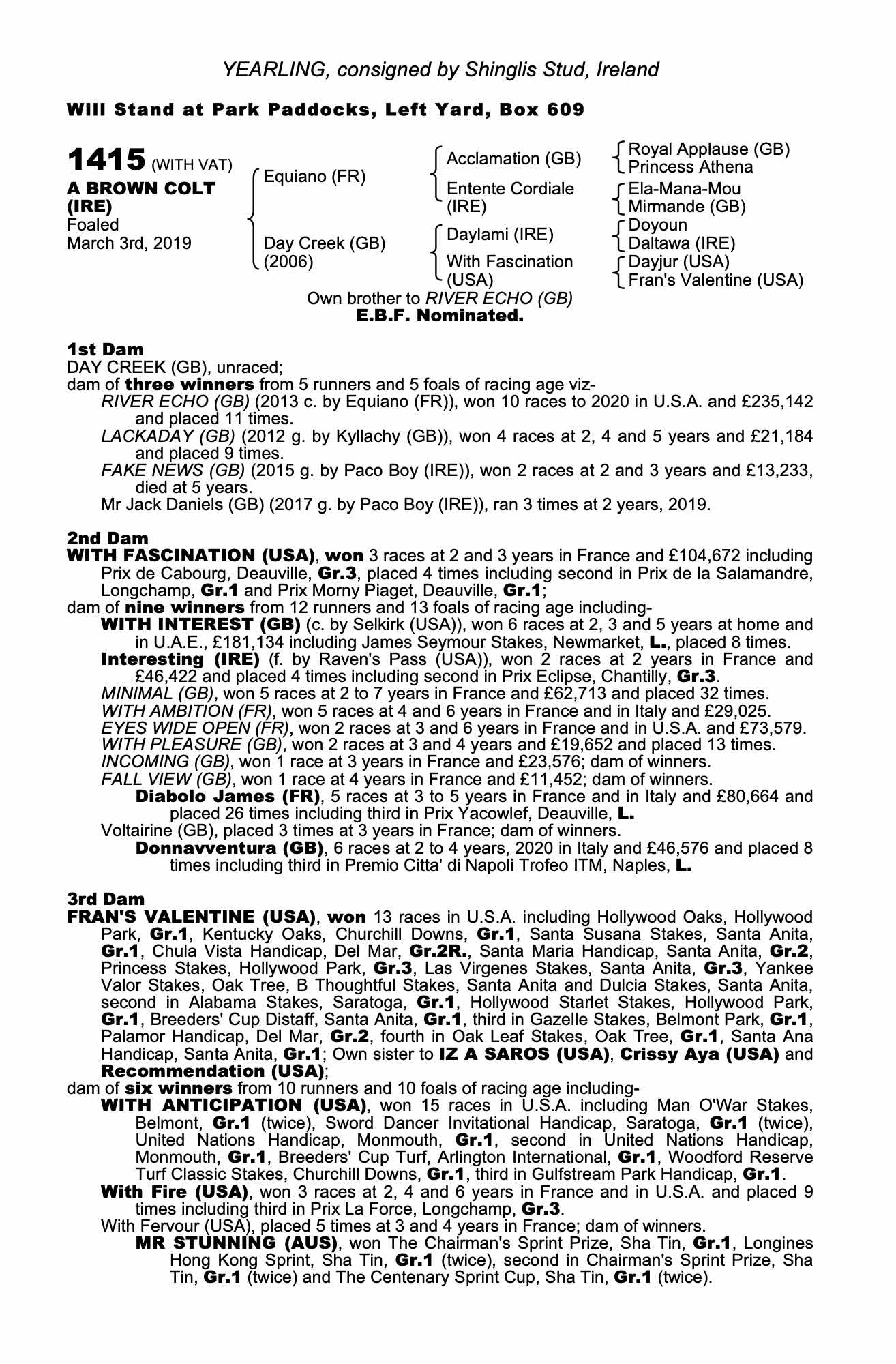 Consignor: Shinglis Stud, Ireland