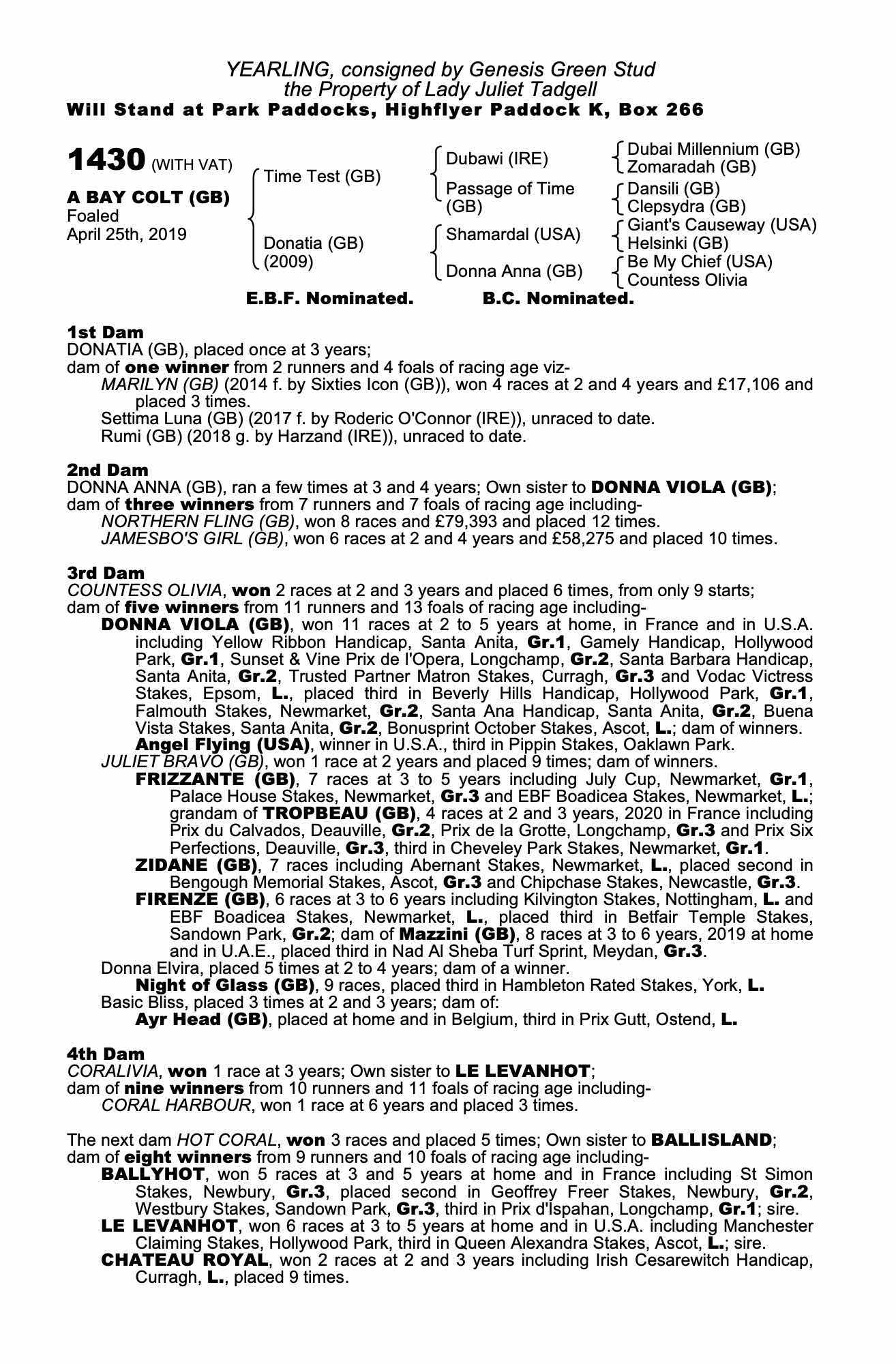 July Sale 2020 lot 217 Marilyn (GB) (M. by Sixties Icon (GB)), Genesis Green Stud=>Troy Steve Bloodstock 8,000 gns