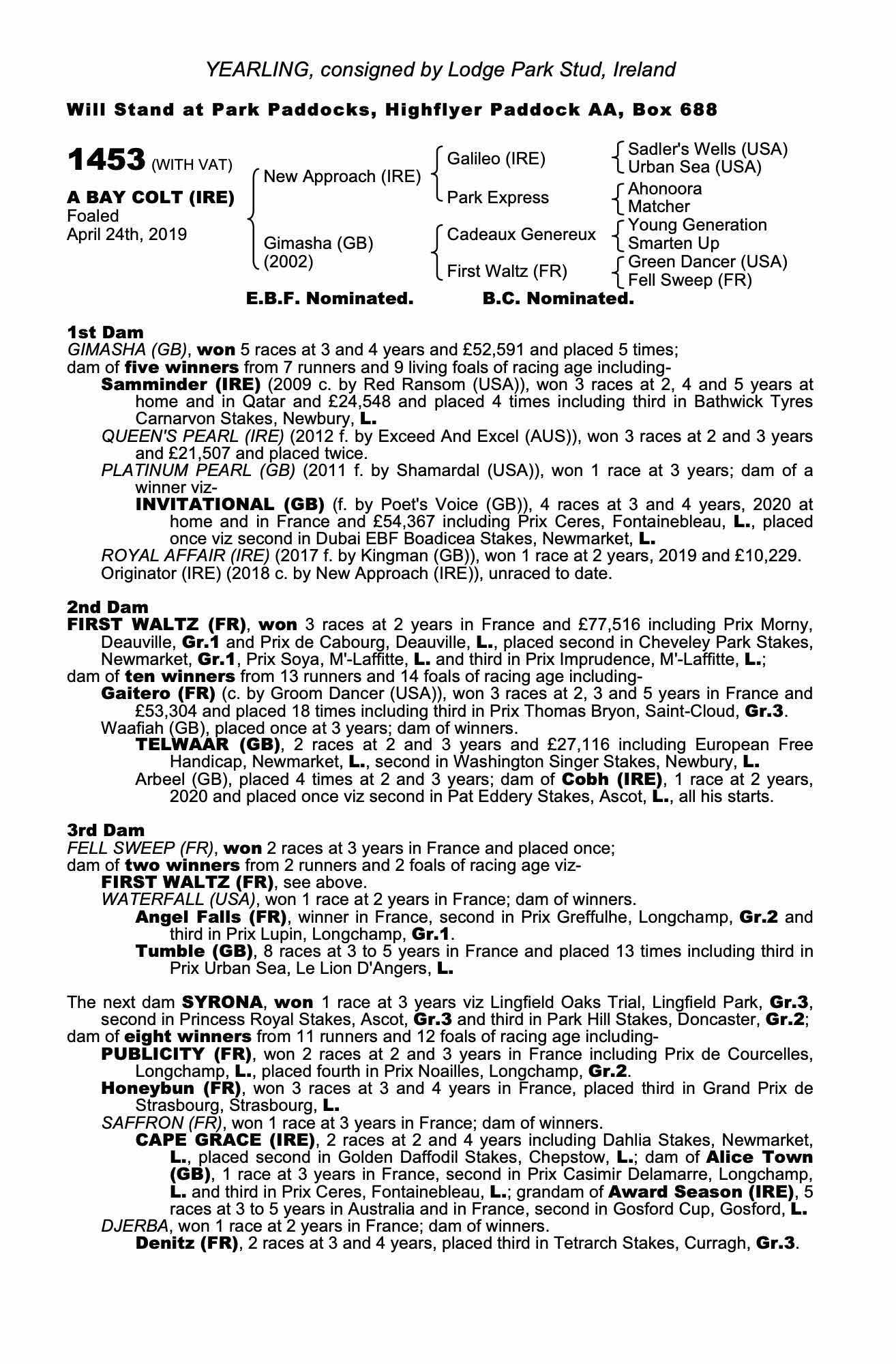Consignor: Lodge Park Stud, Ireland