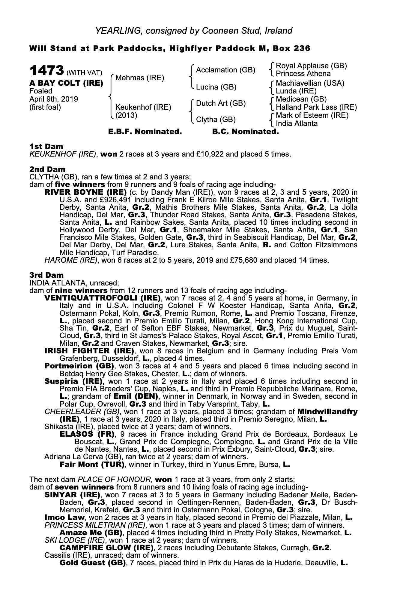 September Yearling Sale Part II 2023 lot 614 F. by Invincible Army (IRE) 2022, Cooneen Stud=>Società di Allenamento Pierdomenico Danilo €4,000