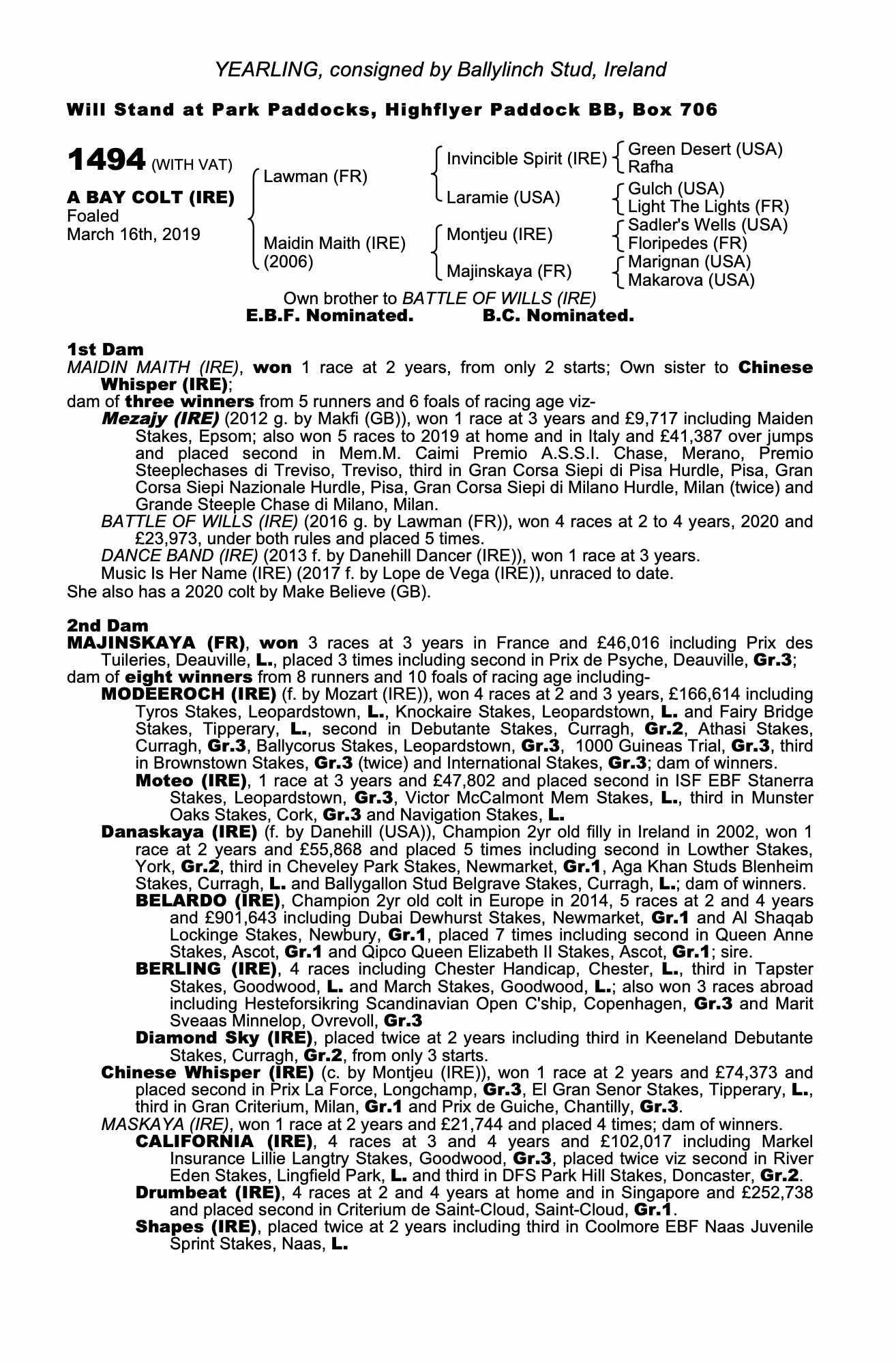 Consignor: Ballylinch Stud, Ireland