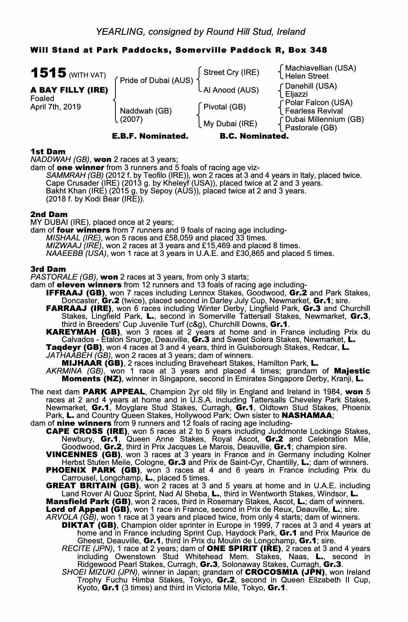 Consignor: Round Hill Stud, Ireland