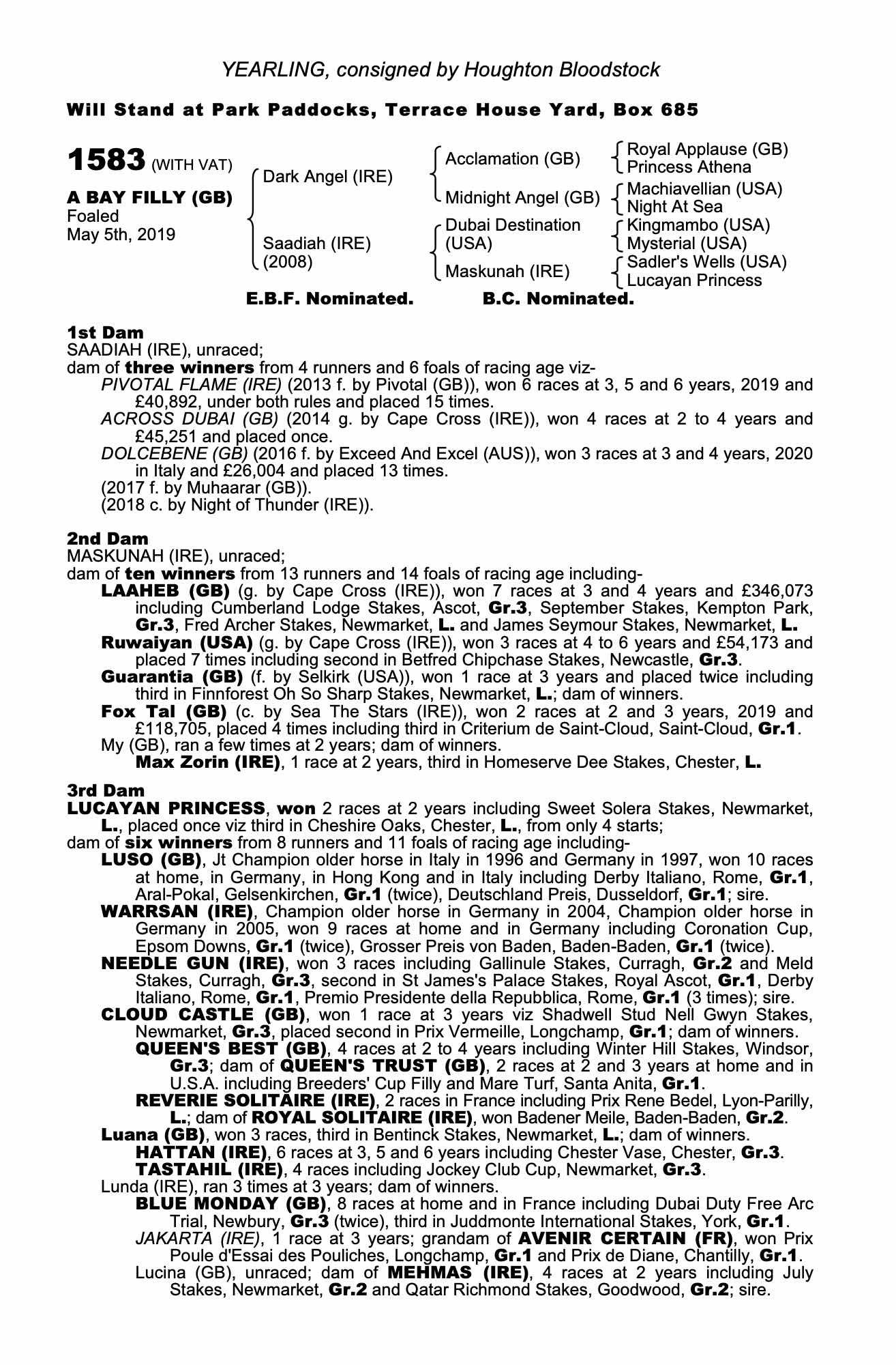 Guineas Breeze Up Sale 2019 lot 141 F. by Muhaarar (GB) 2017, Hardwood Stud, Ireland=>Andrea Zanoboni 3,000 gns
