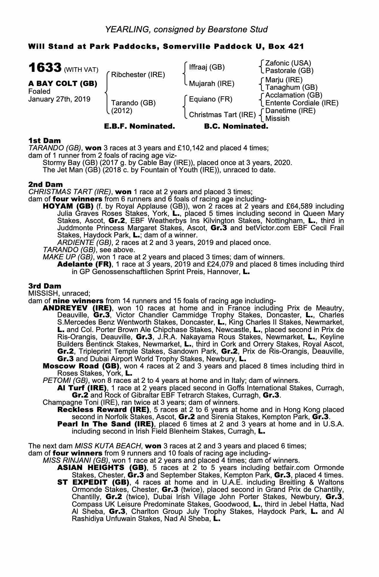 August Sale 2023 lot 82 Tarareaba (GB) (C. by Territories (IRE)), Jamie Railton (Agent)=>Lot Not Sold
