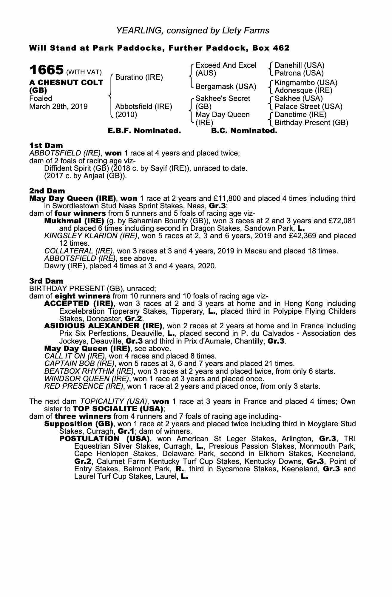 October Yearling Sale, Book 3 2021 lot 1842 C. by Gregorian (IRE) 2020, Llety Farms=>Newmarket Pre-Training 12,000 gns