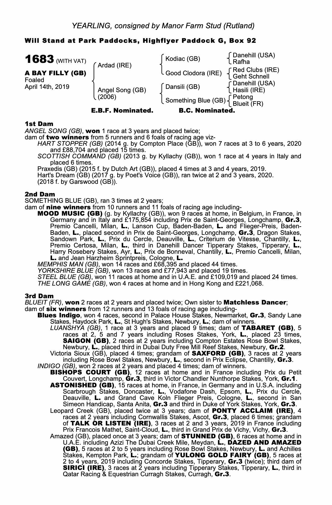 August Sale 2020 lot 649 Hart Stopper (GB) (G. by Compton Place (GB)), Jamie Railton (Agent)=>Grant Tuer 12,000 gns