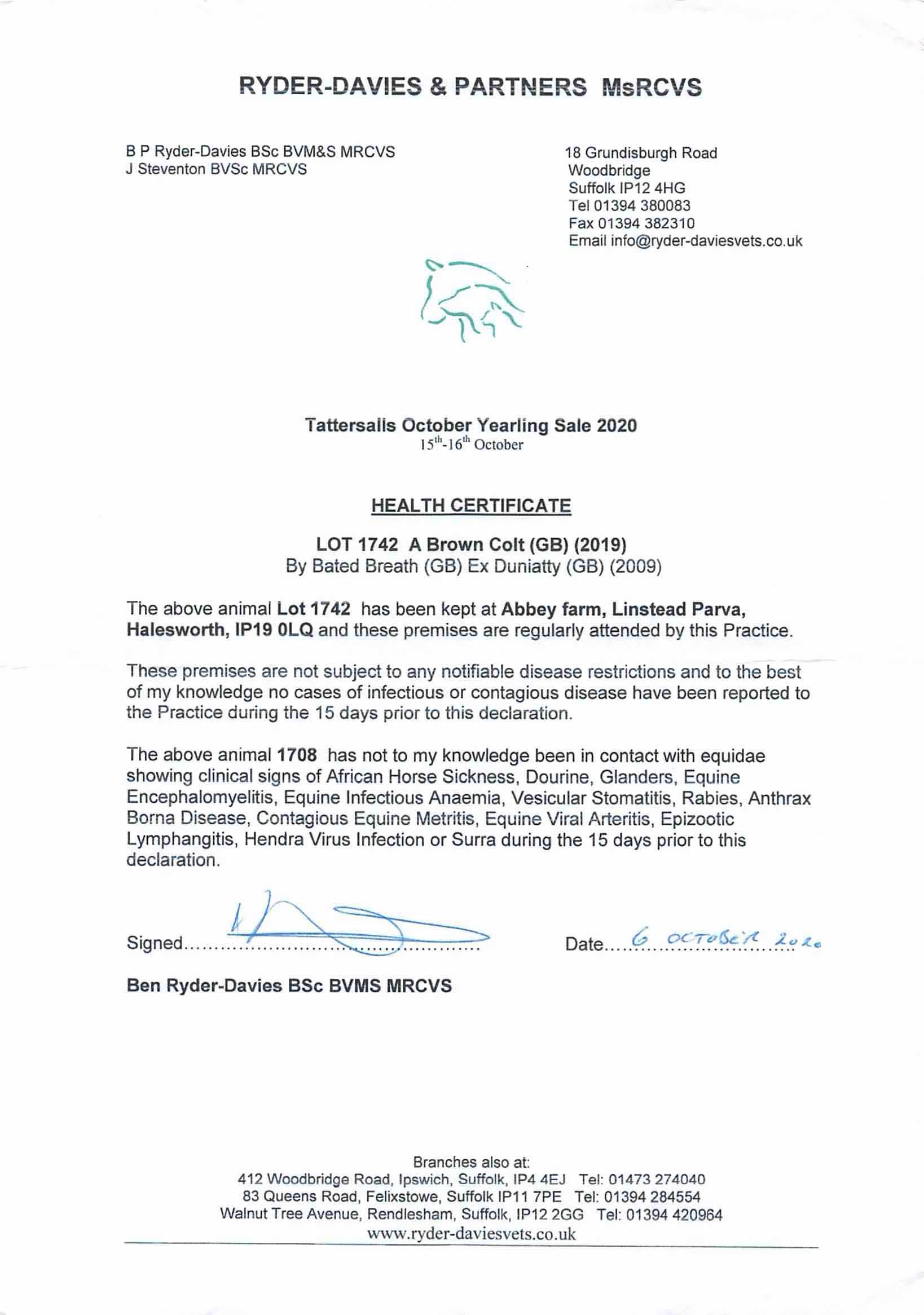 October Yearling Sale, Book 3 2019 lot 1796 C. by Twilight Son (GB) 2018, Rosyground Stud=>Malgorzata Zegarska 4,200 gns