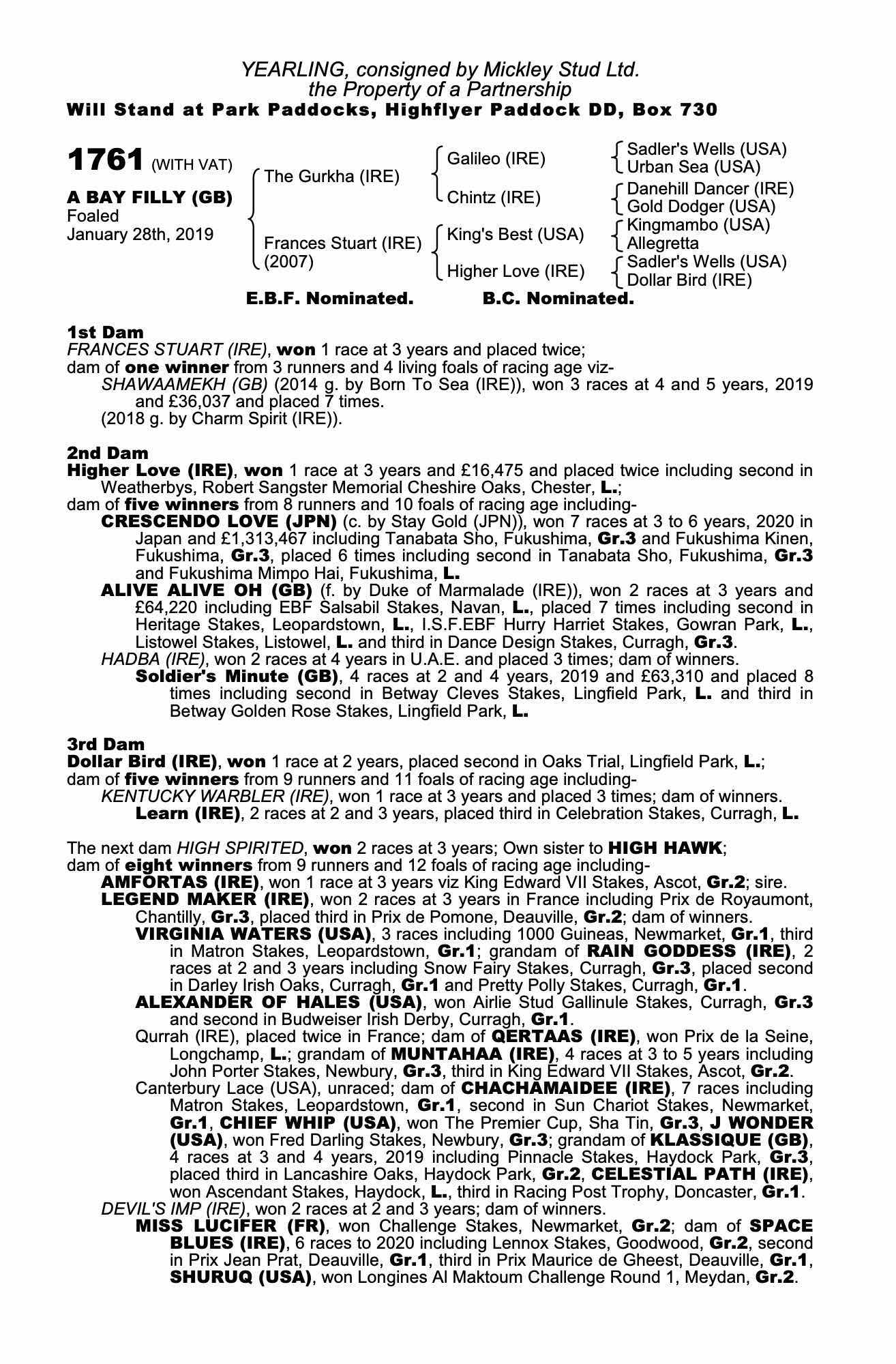 Ascot March Sale 2019 lot 20 Barbara Villiers (GB) (F. by Champs Elysees (GB)), Ty-Derlwyn Farm (David Evans)=>AM Horseracing £2,000