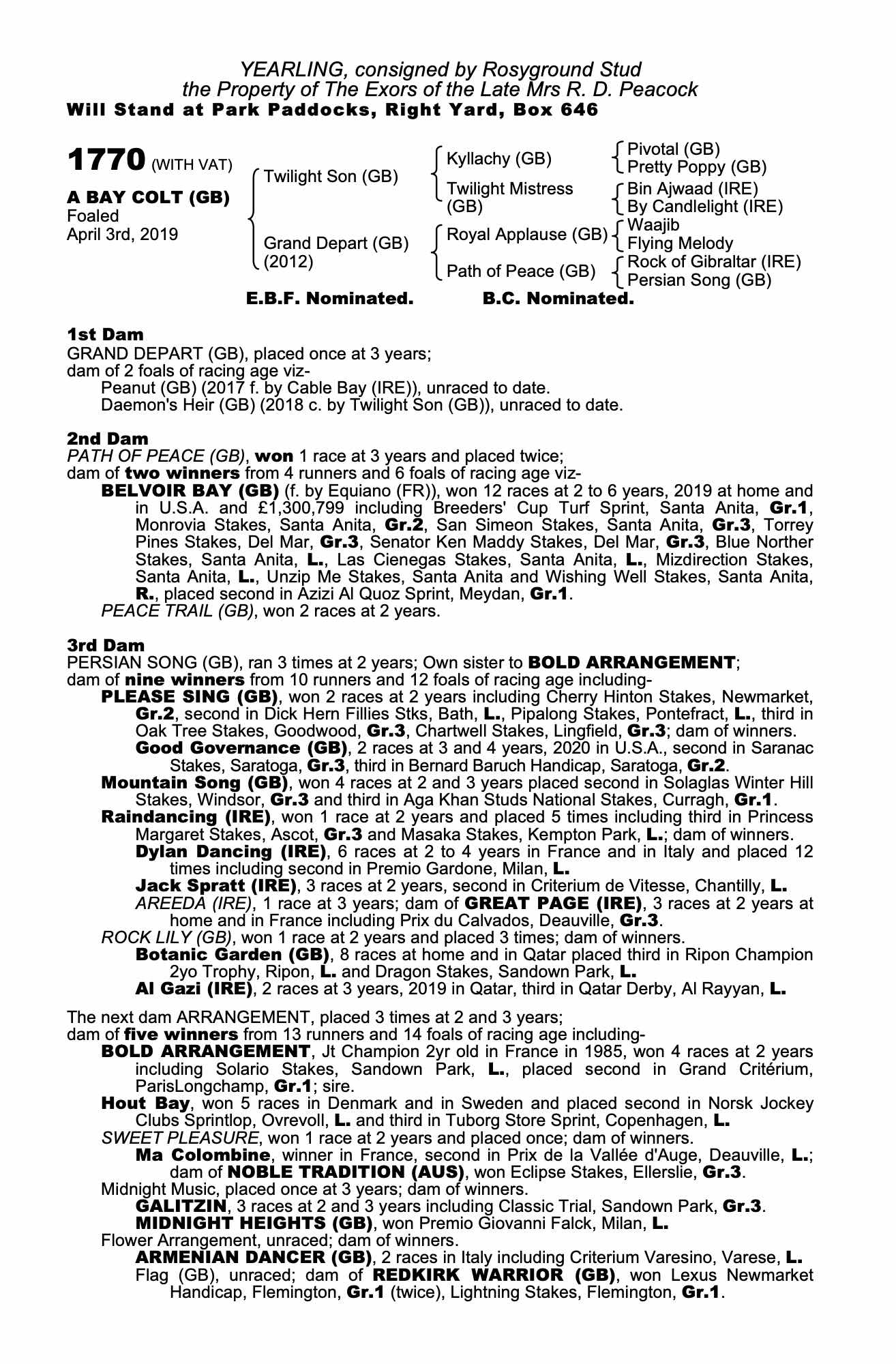 Consignor: Rosyground Stud