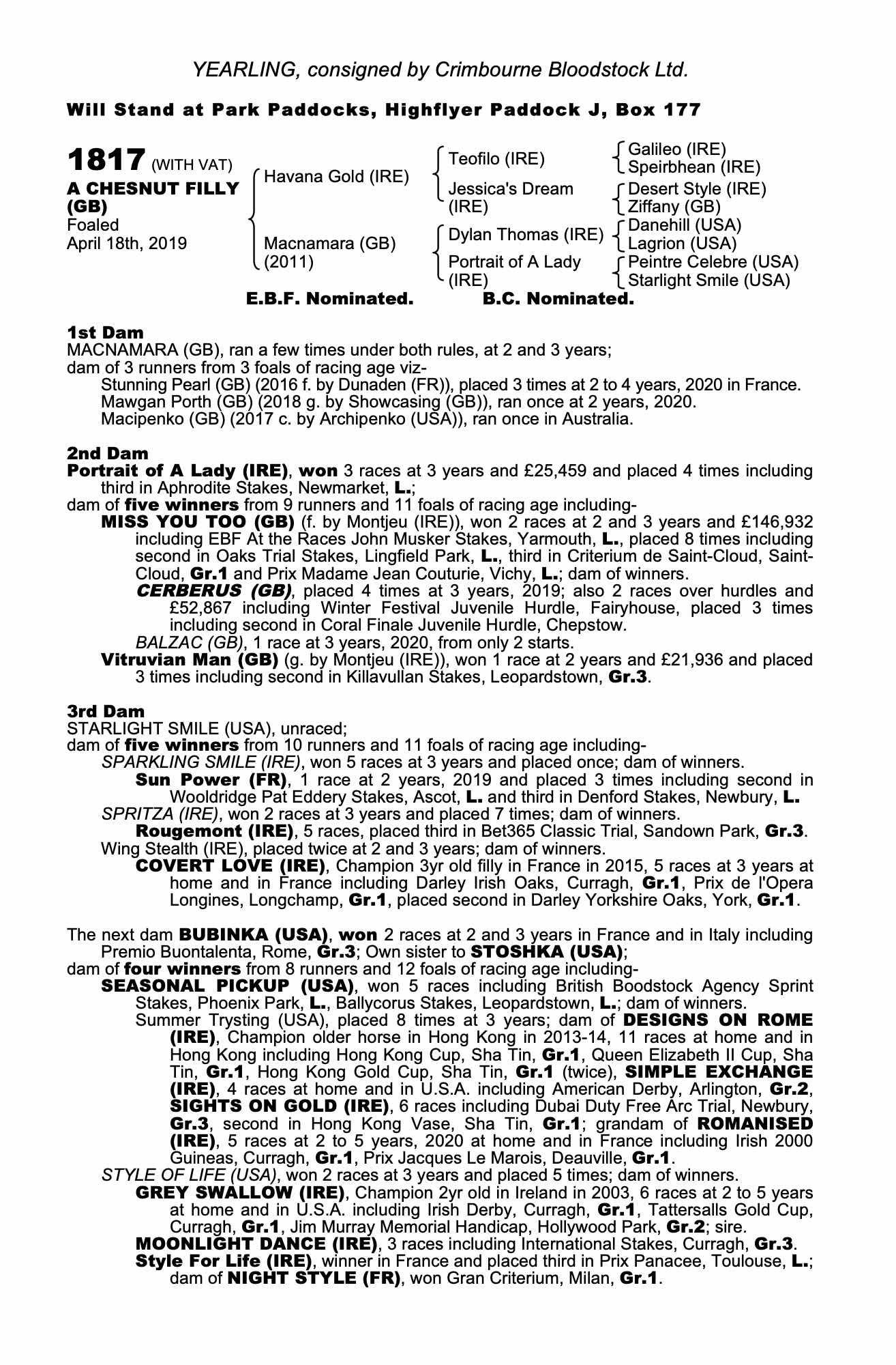 Consignor: Crimbourne Bloodstock Ltd.