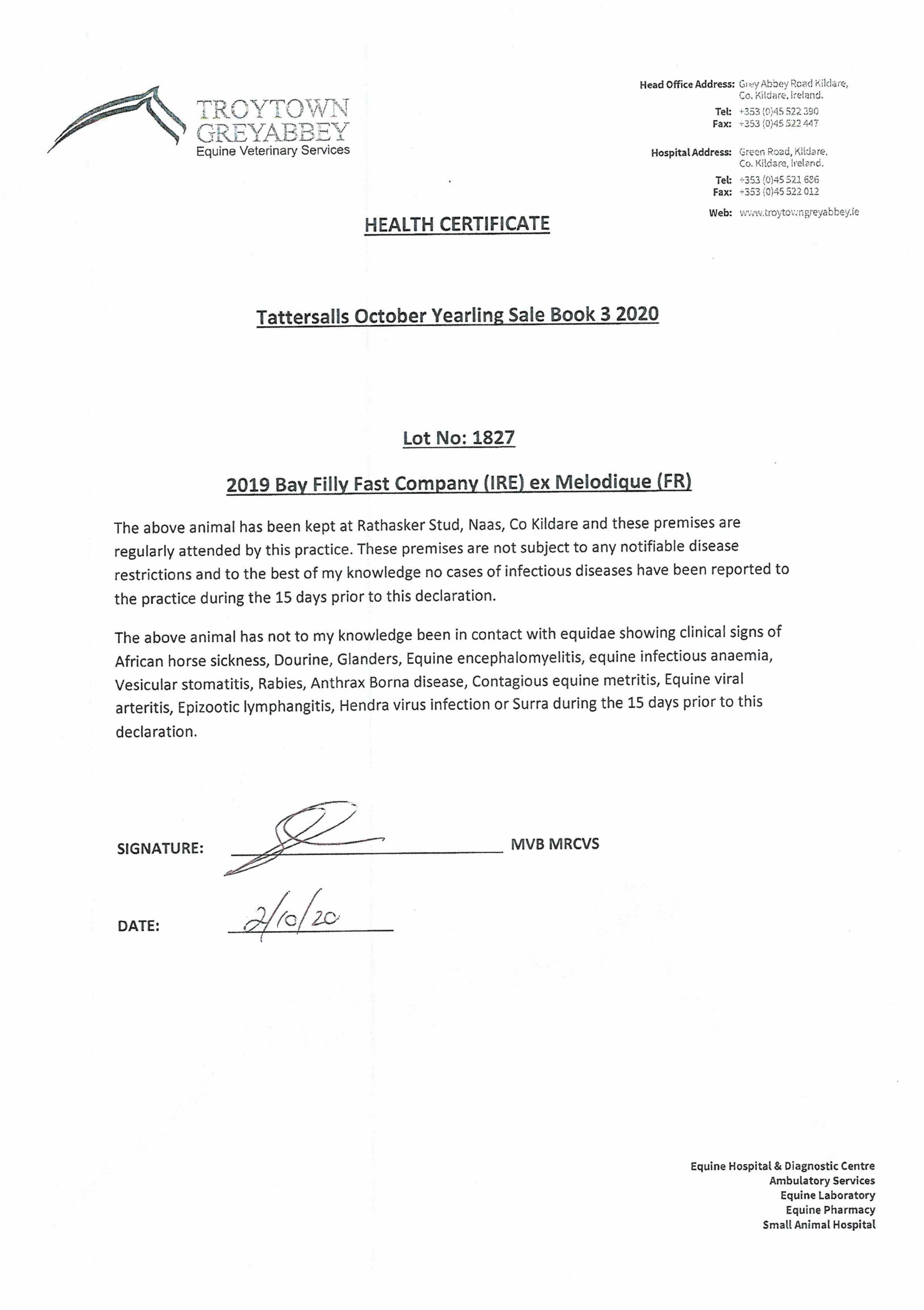 October Yearling Sale, Book 2 2018 lot 1288 F. by Charm Spirit (IRE) 2017, Rathasker Stud, Ireland=>A C Elliott, Agent 100,000 gns