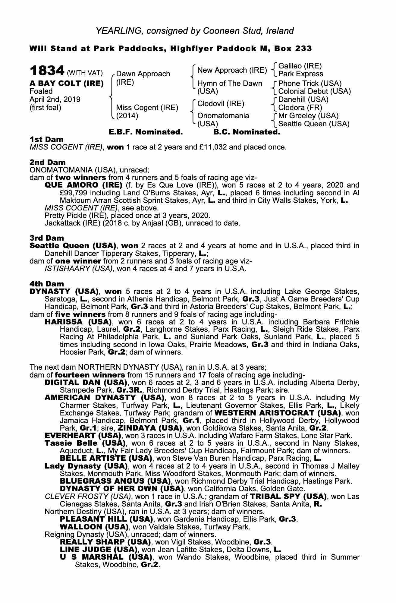 September Yearling Sale Part II 2021 lot 513 F. by Dragon Pulse (IRE) 2020, Cooneen Stud=>Nick Bradley Racing / G Boughey £10,000