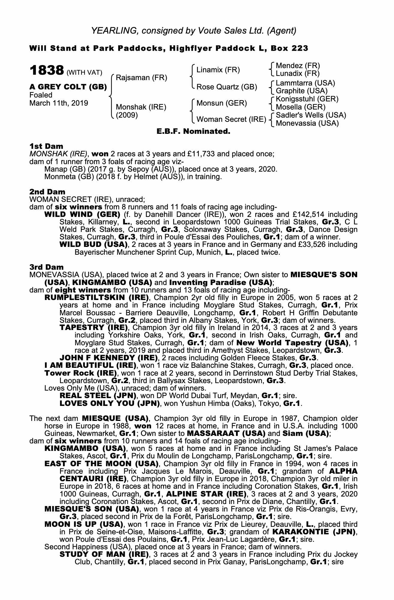 Consignor: Voute Sales Ltd. (Agent)