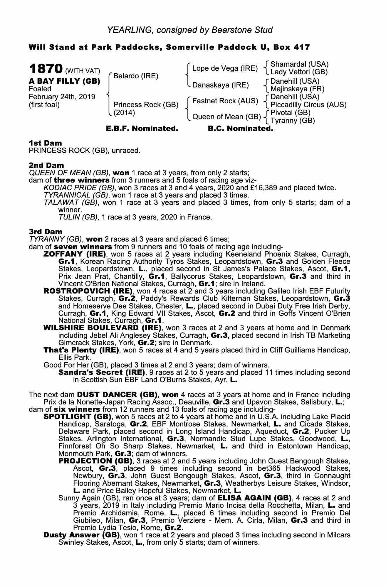 October Yearling Sale, Book 3 2025 lot 1837 F. by Dream Ahead (USA) 2024, Bearstone Stud=>Clare Hobson 2,500 gns
