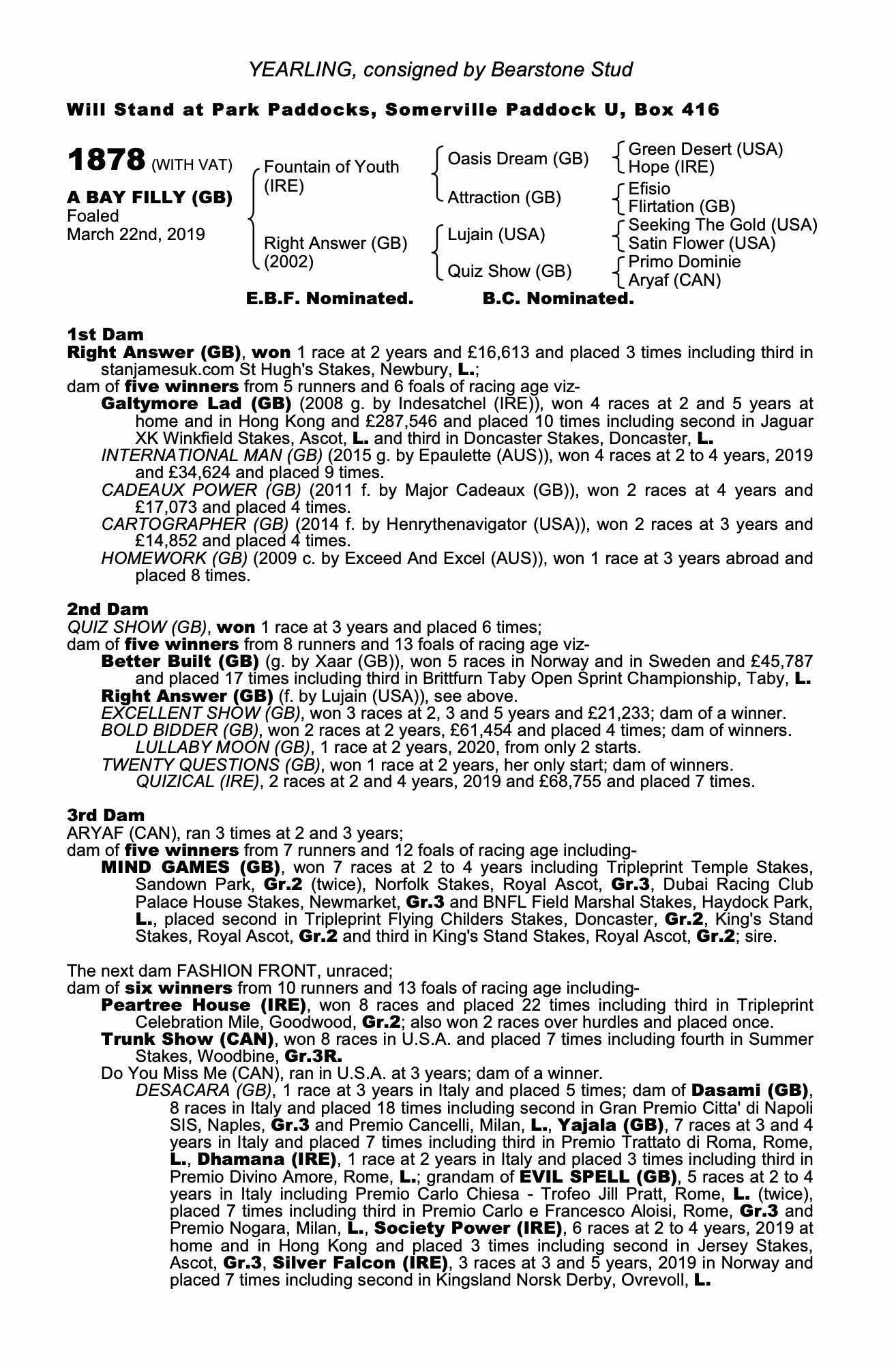 November Sale 2023 lot 4 F. by Washington DC (IRE) 2022, Bearstone Stud=>TM Jones 1,000 gns