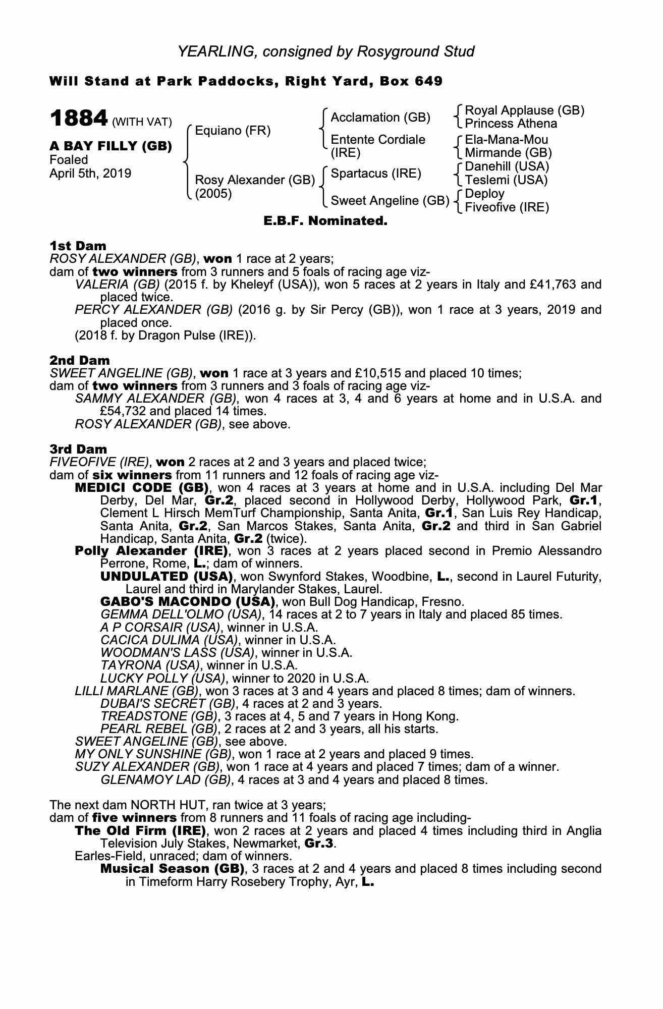 Consignor: Rosyground Stud