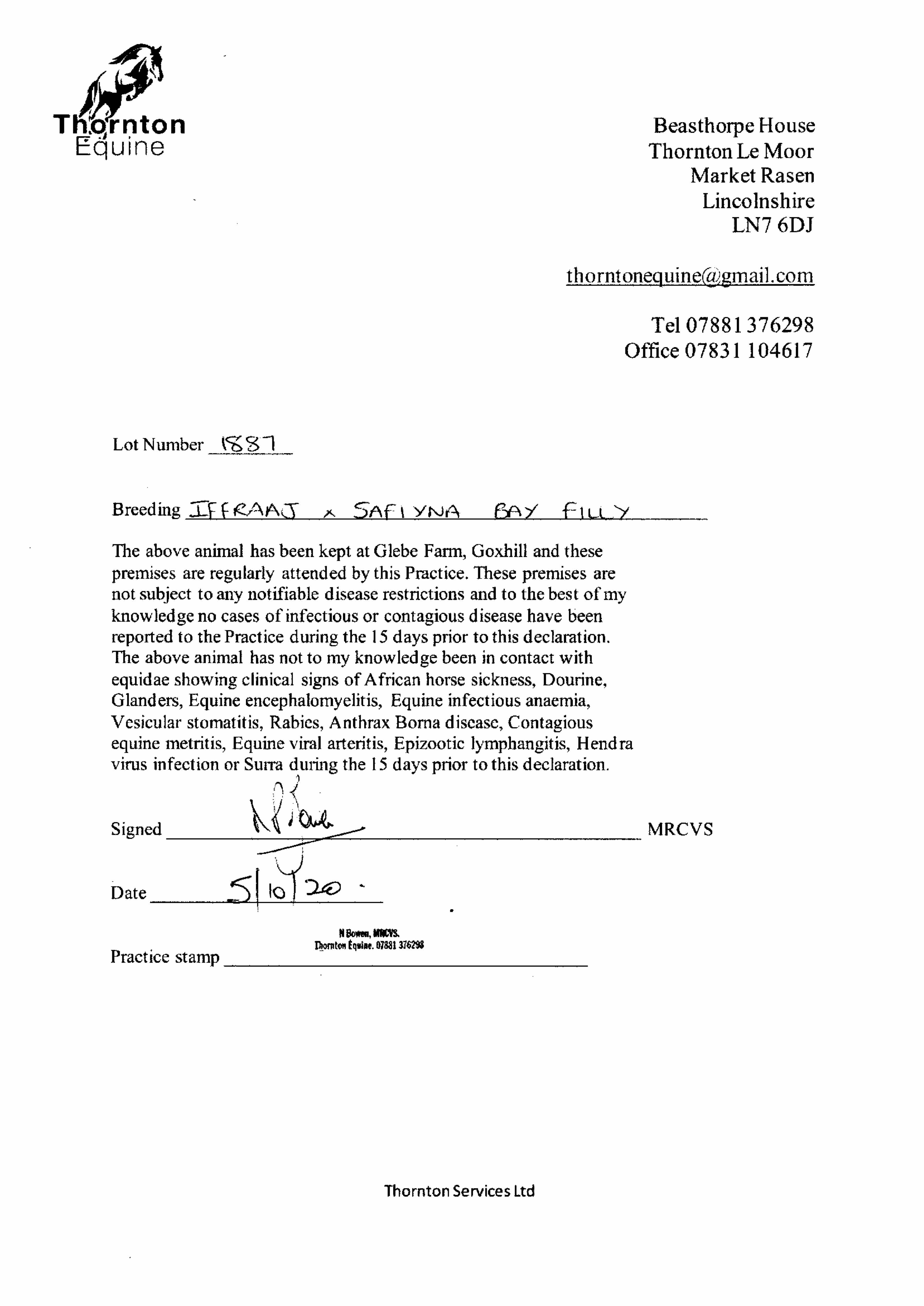 Consignor: Hyde Park Stud, Ireland