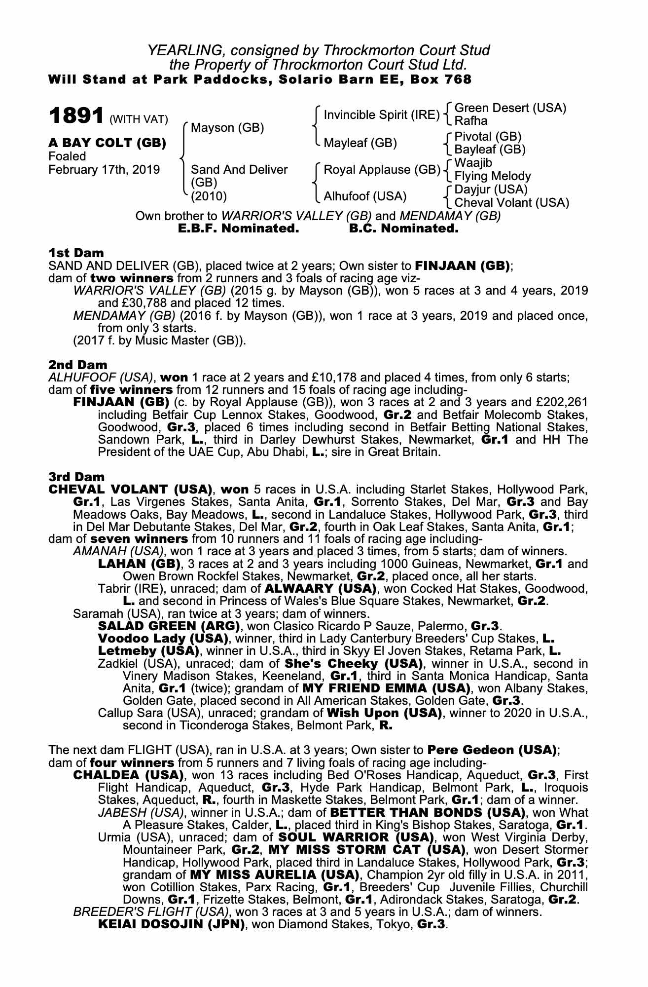 Somerville Yearling Sale 2021 lot 107 C. by Ardad (IRE) 2020, Throckmorton Court Stud=>Peter & Ross Doyle Bloodstock 50,000 gns