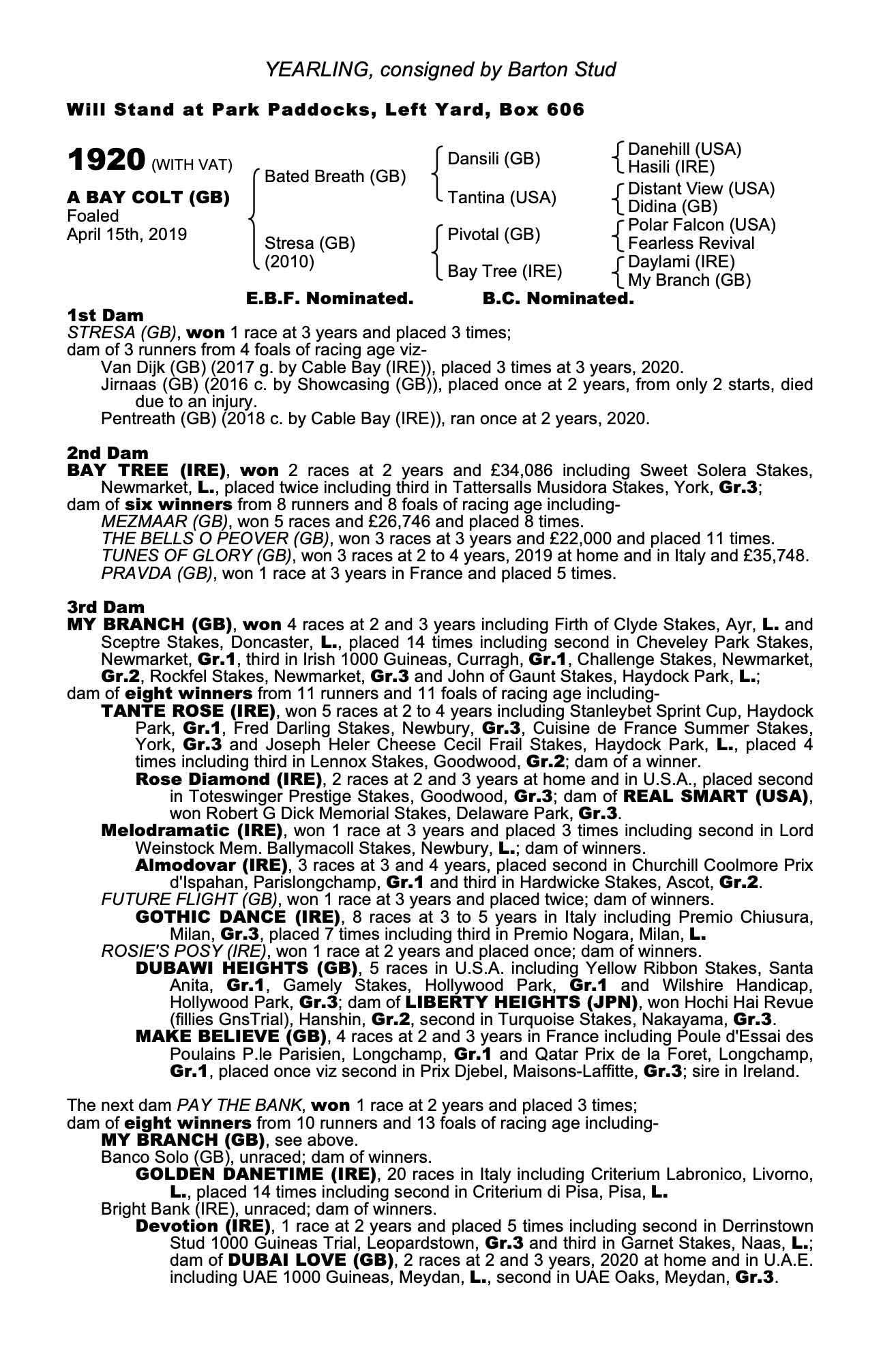 Somerville Yearling Sale 2021 lot 135 C. by Tasleet (GB) 2020, Barton Stud=>Kilbrew Stables 22,000 gns
